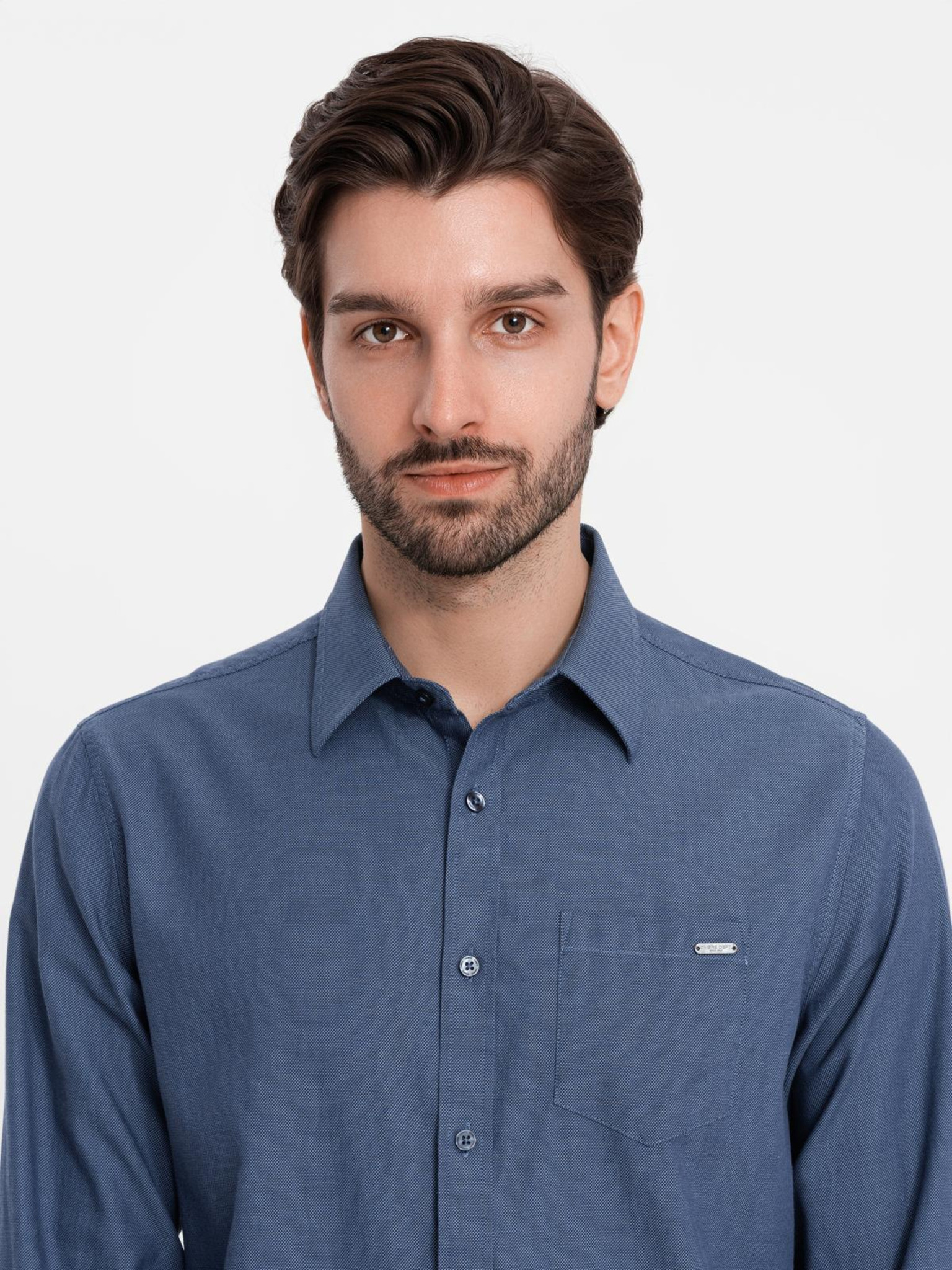 Мъжка дънкова риза на копчета с джобове - синьо V2 OM-SHDS-0210 Ombre Clothing