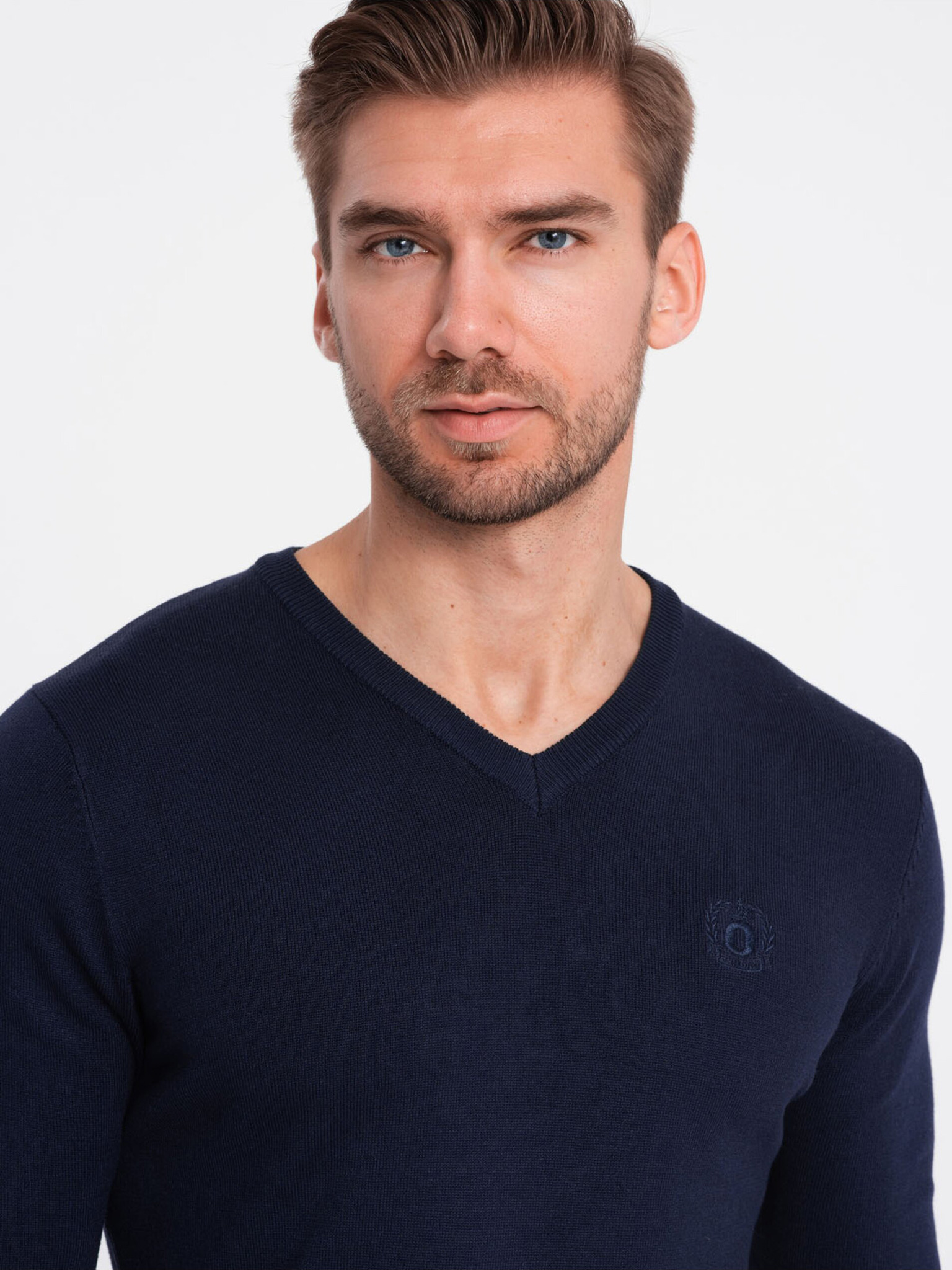 Елегантен мъжки пуловер BASIC с V-образно деколте Омбре Облекло
