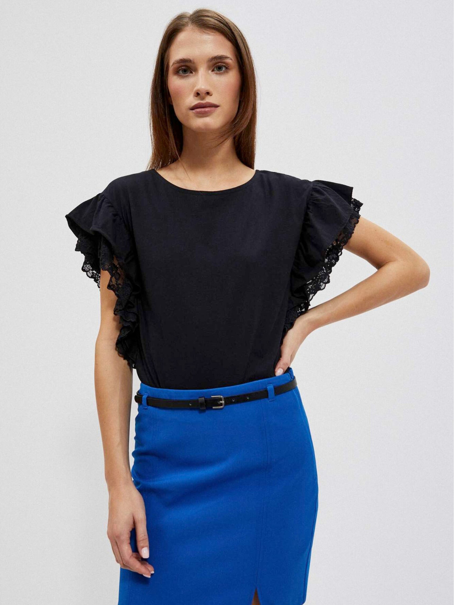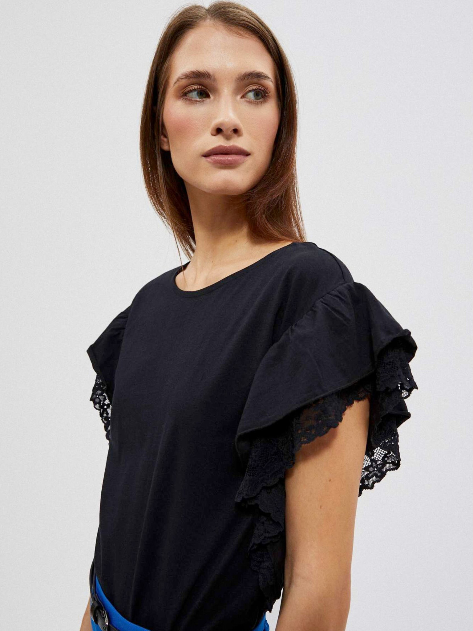 Черен топ с контрастен кант Moodo