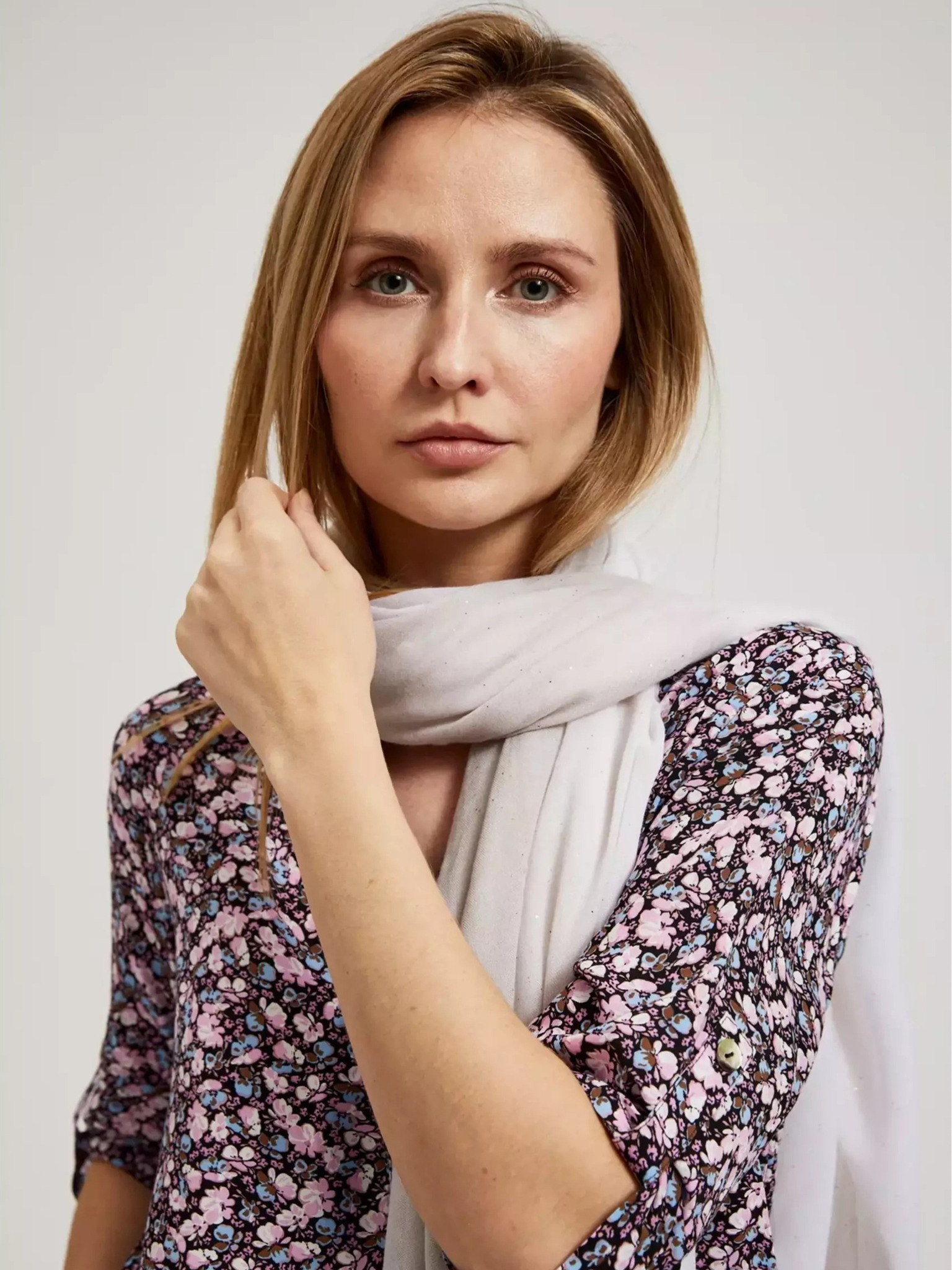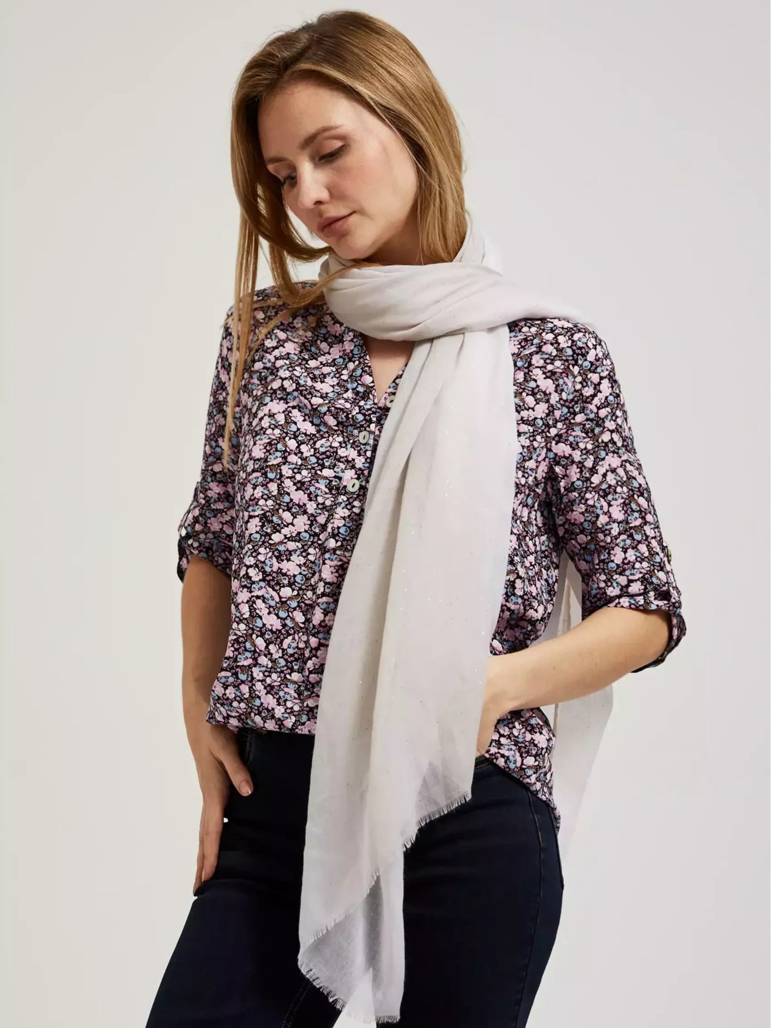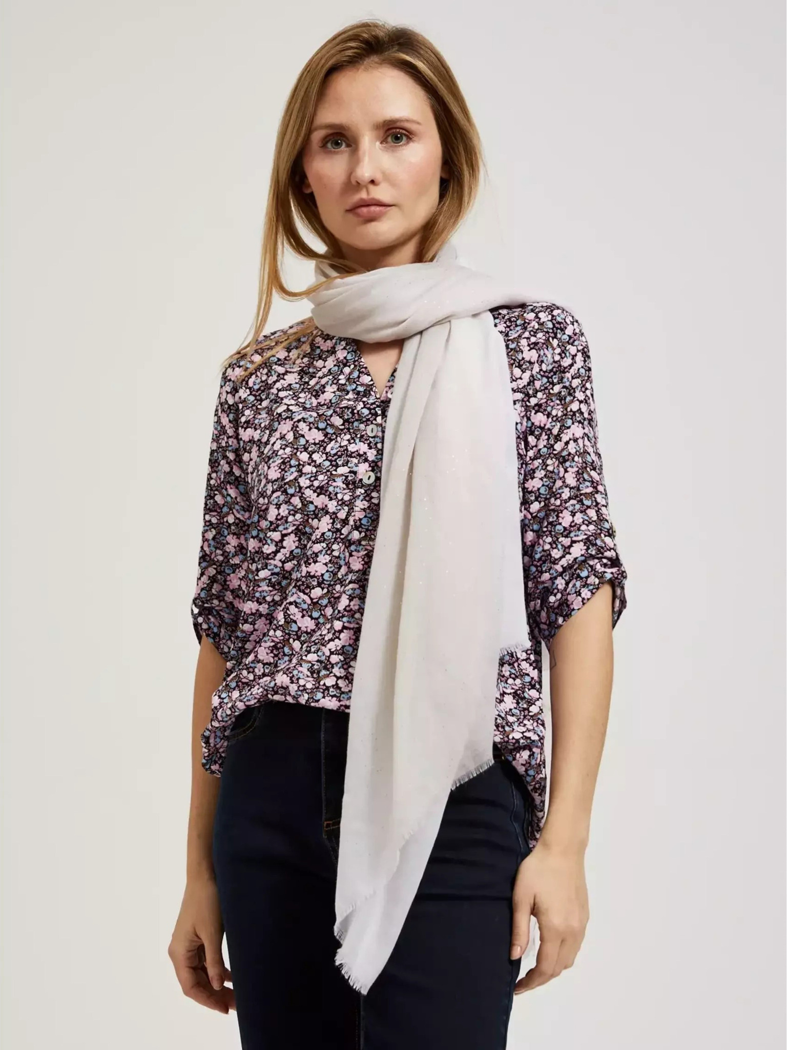 Сив летен шал с накъсан край Moodo