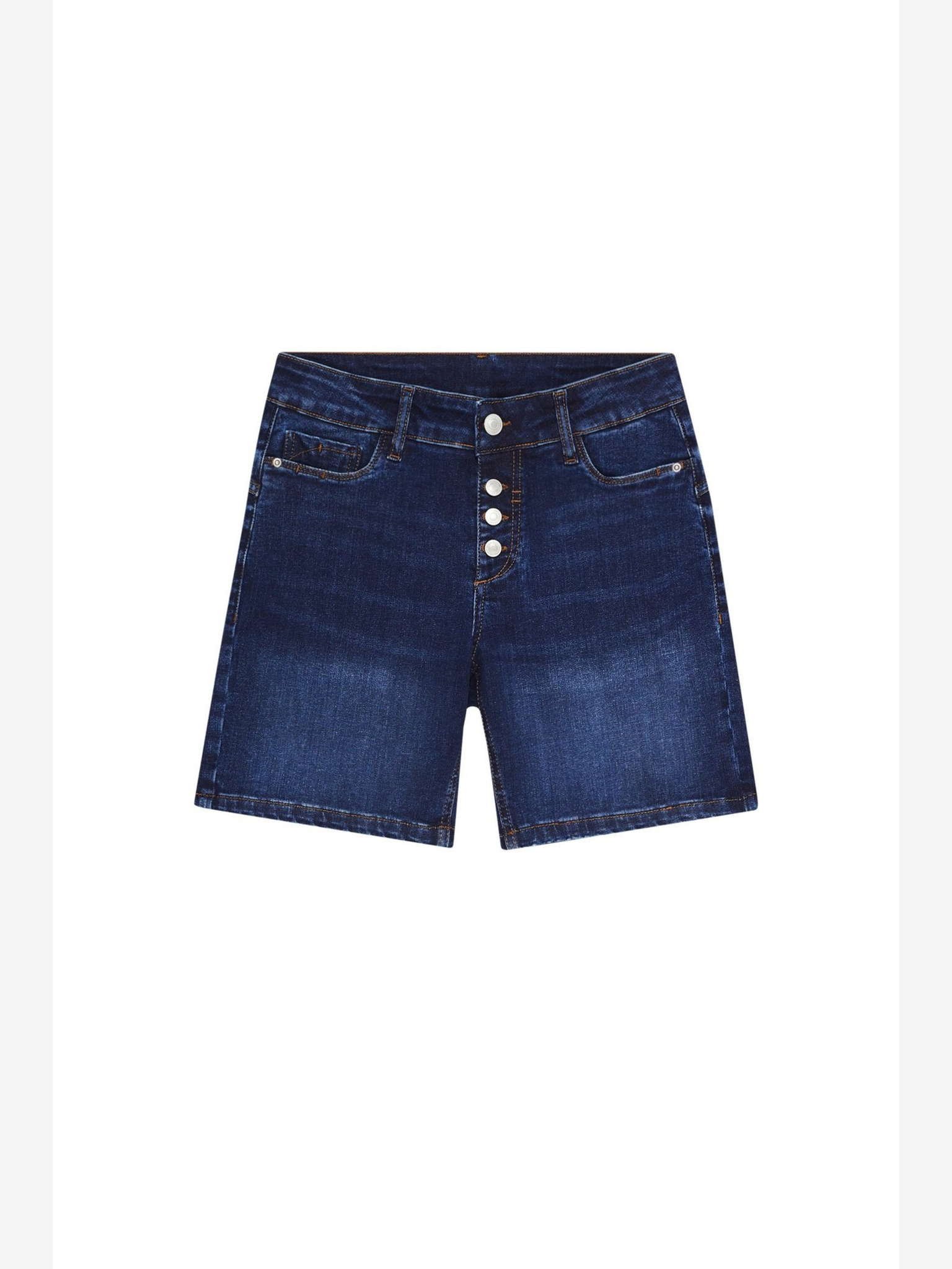 Тъмносини дамски къси панталони от деним Moodo