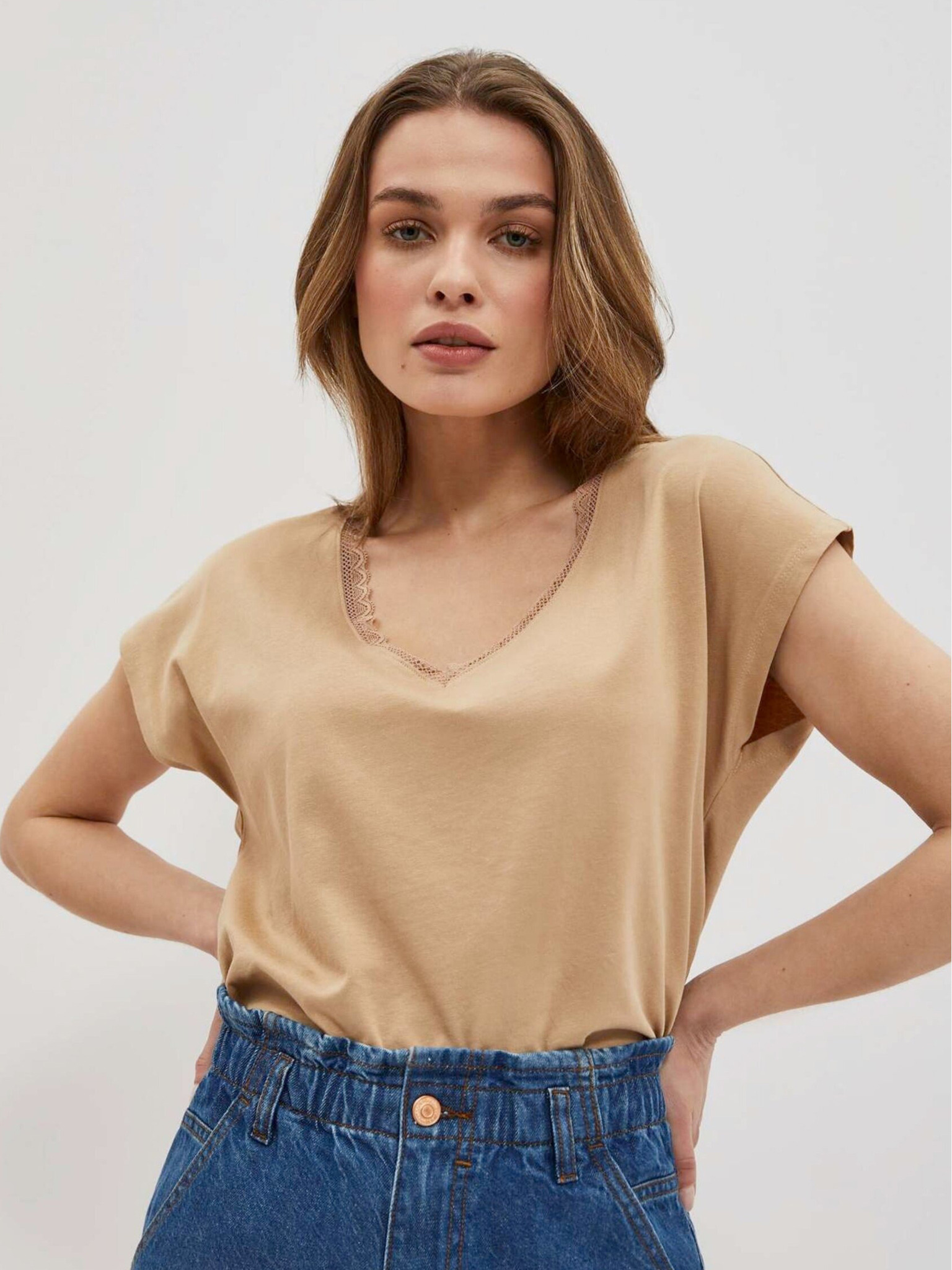 Бежова тениска с къс ръкав Moodo