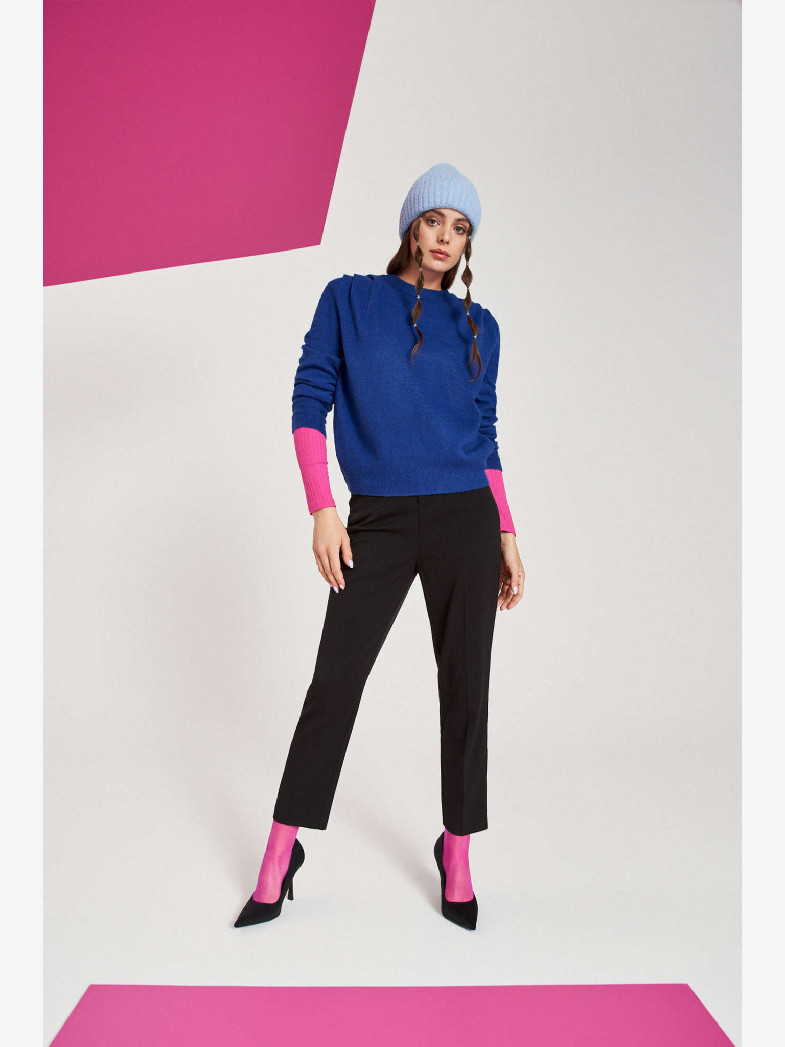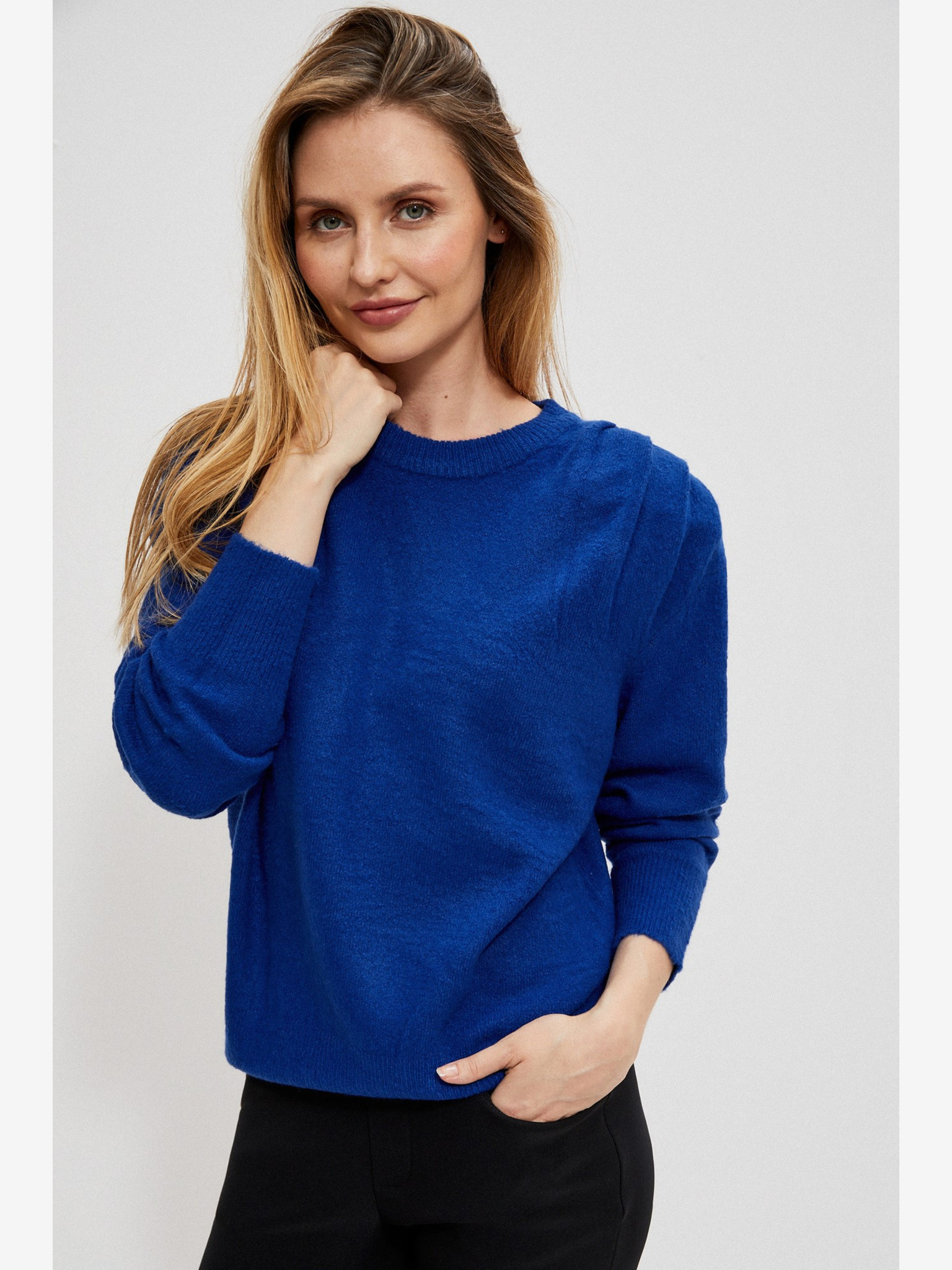 Син дамски пуловер Moodo