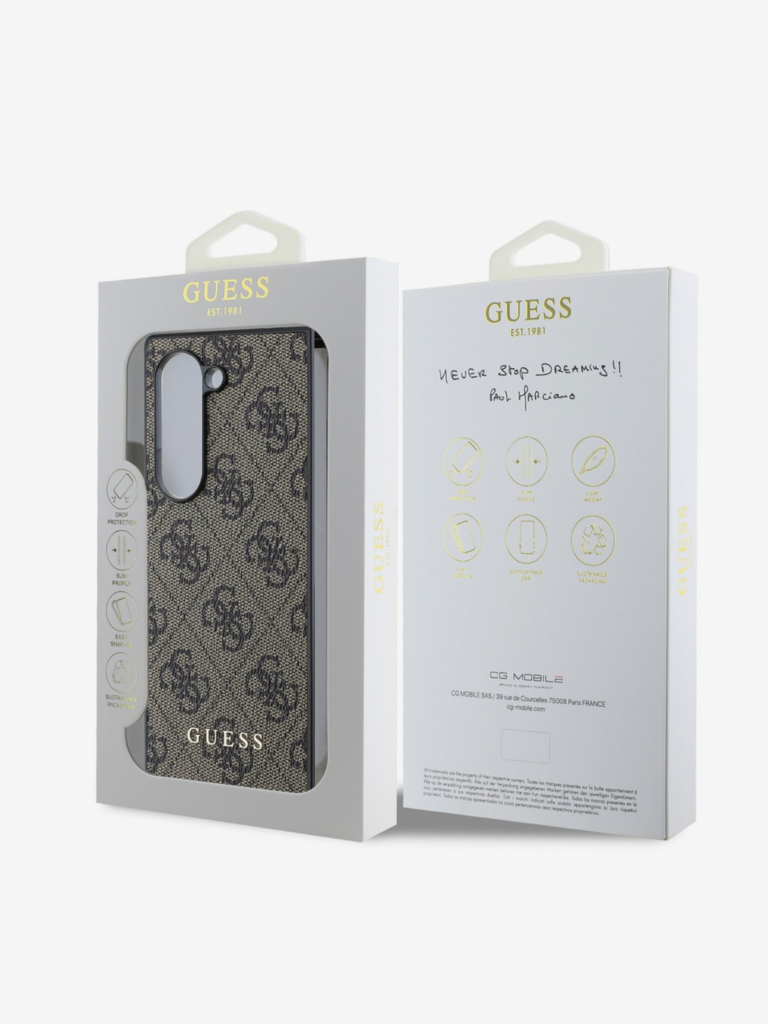 Guess IML Gold Outline Stand Camera Frame MagSafe Заден калъф за iPhone 15 Pro Прозрачен