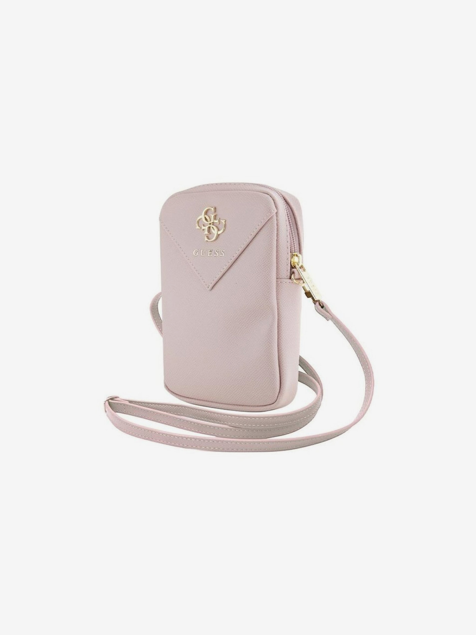 Guess PU 4G Metal Logo Crossbody Ремък Заден капак за iPhone 16 Pro Max Розово