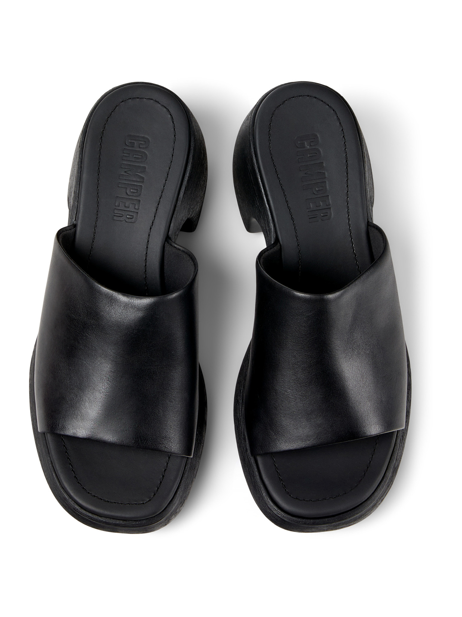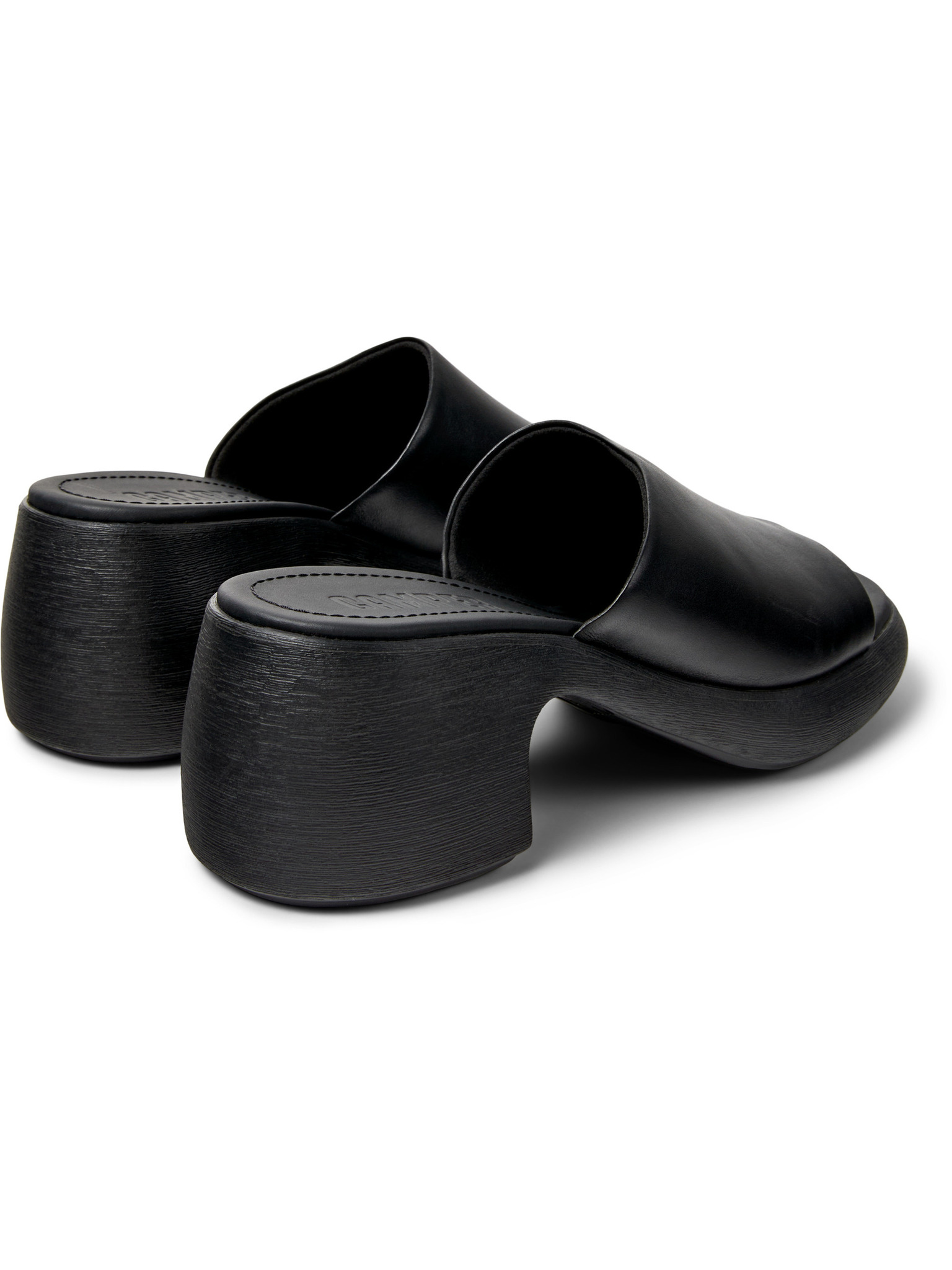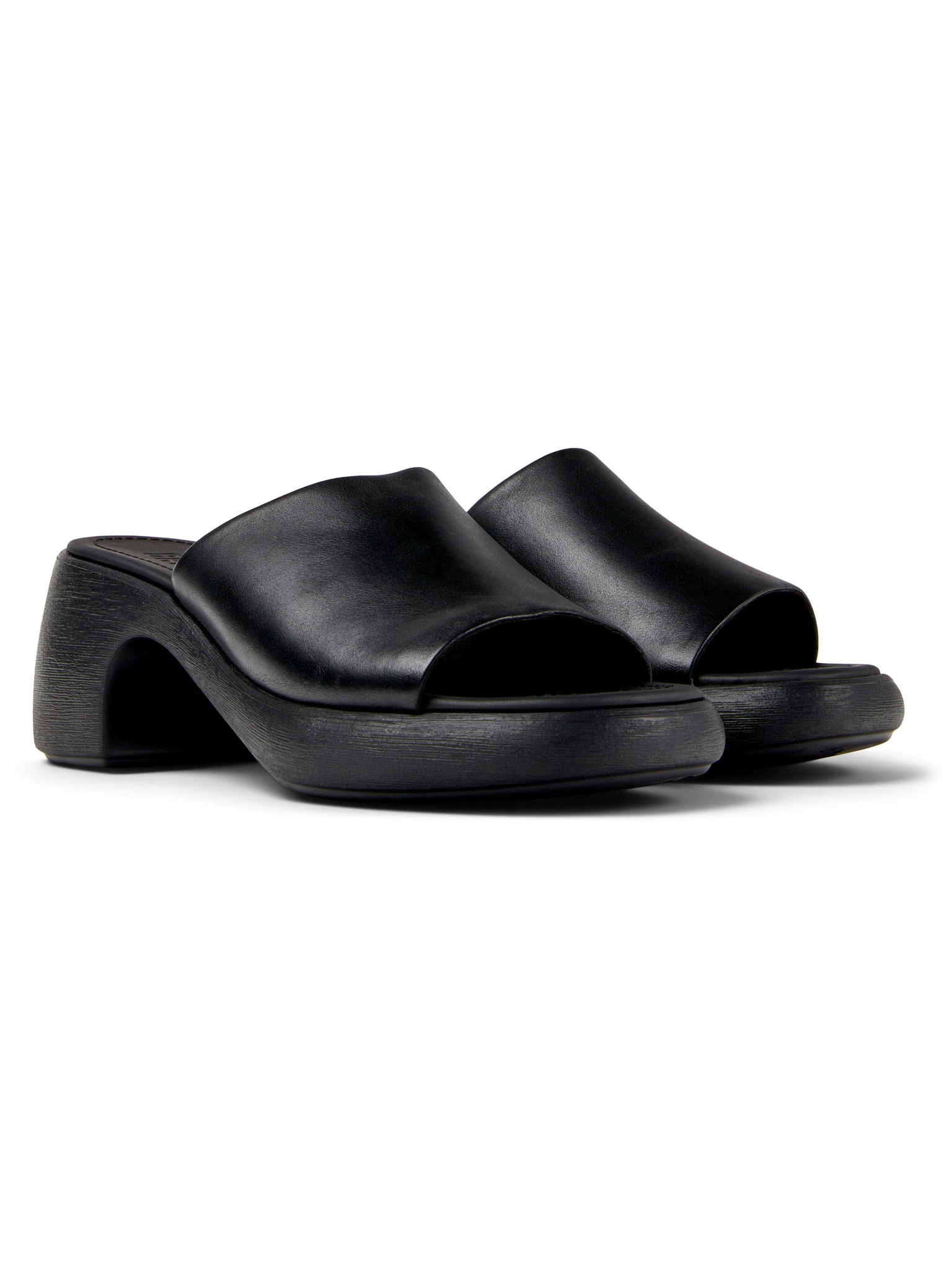 Черни дамски кожени чехли с токчета OJJU
