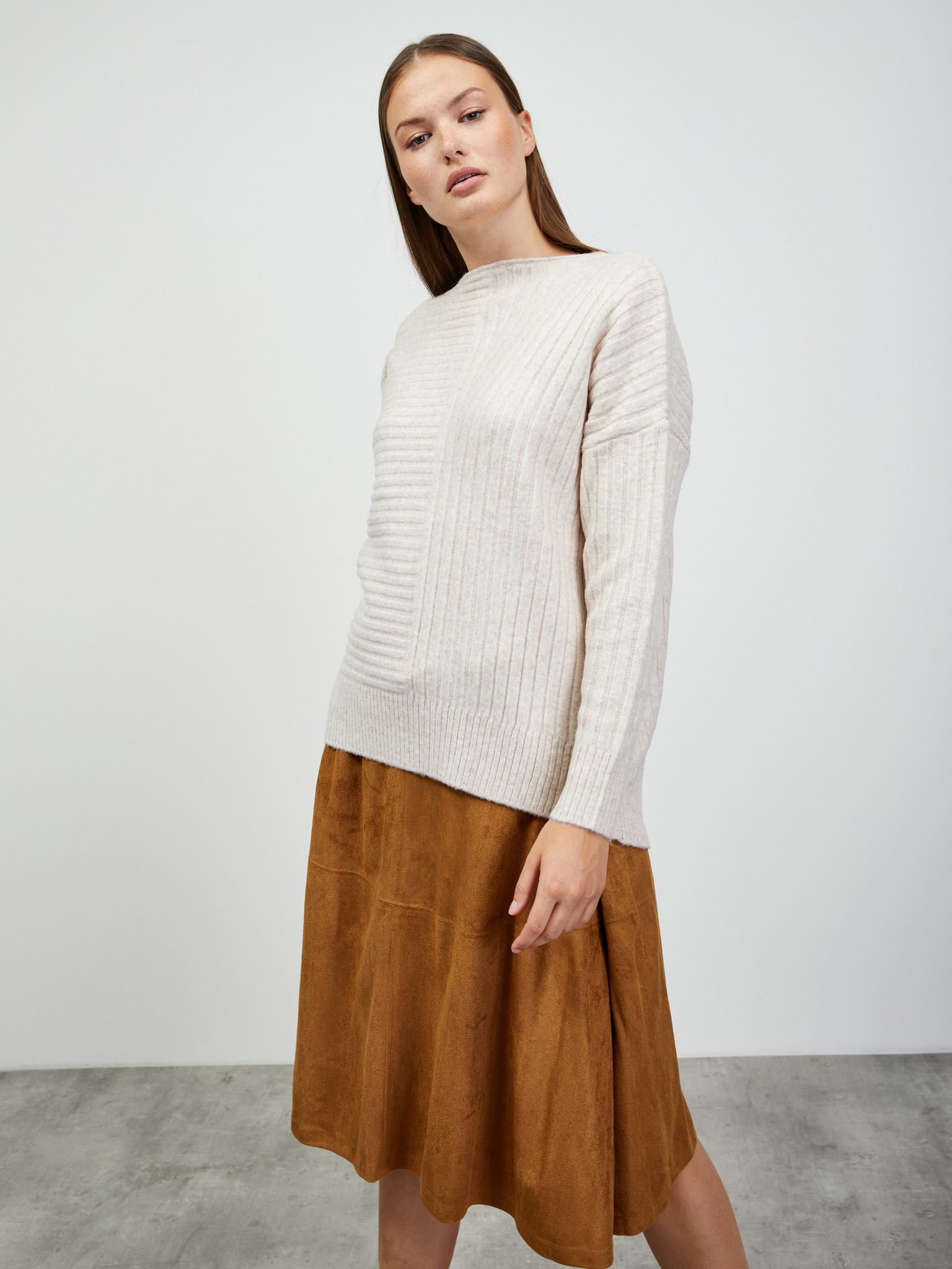 Ребрест пуловер с облачна прежда Marks & Spencer бежов