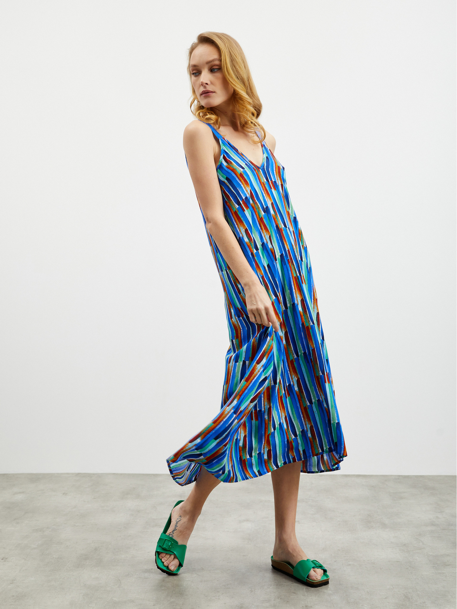 Синя дамска миди рокля с шарки ZOOT.lab Mari