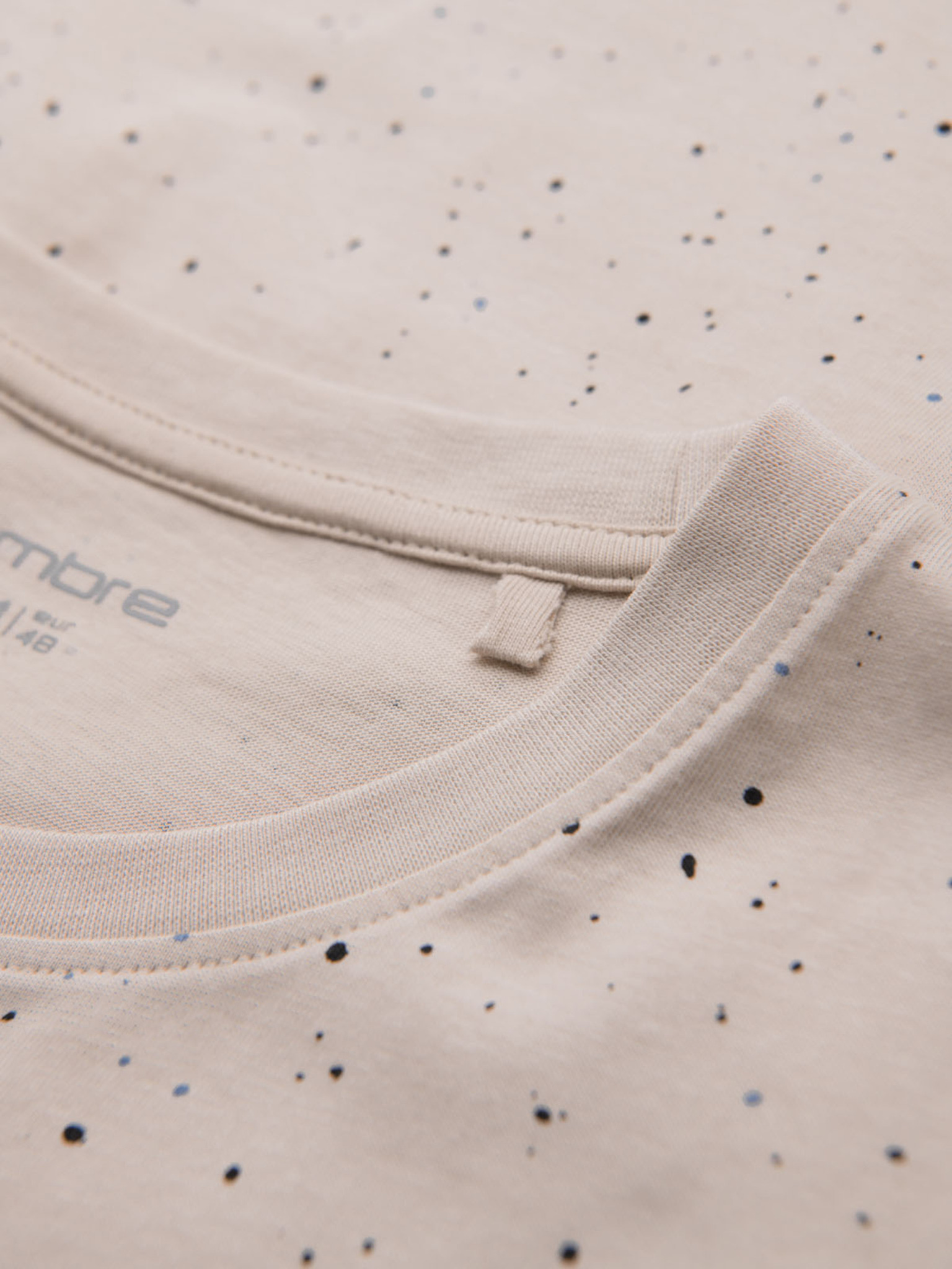 Мъжка памучна тениска с печат и кръгло деколте - бежова