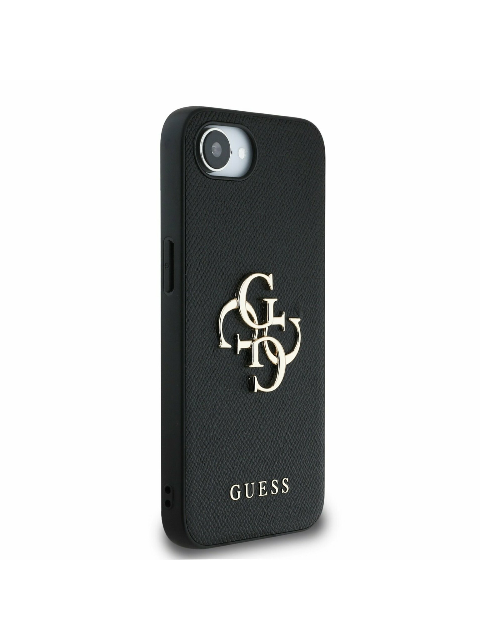 Guess PU 4G Metal Logo Strap Заден капак за iPhone 16 Черно