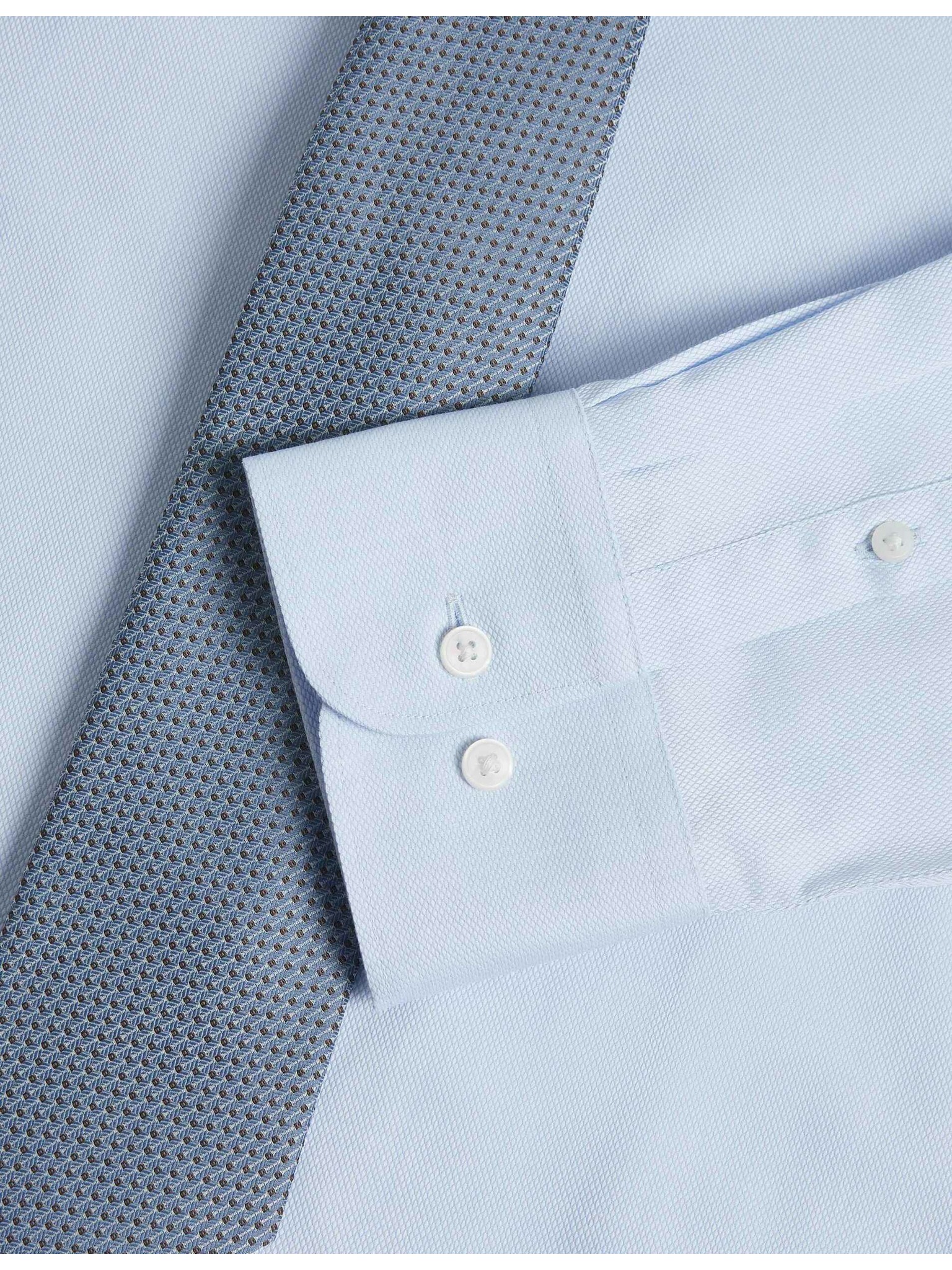 Луксозна риза с тесен силует от чист памук с текстура Marks & Spencer синя