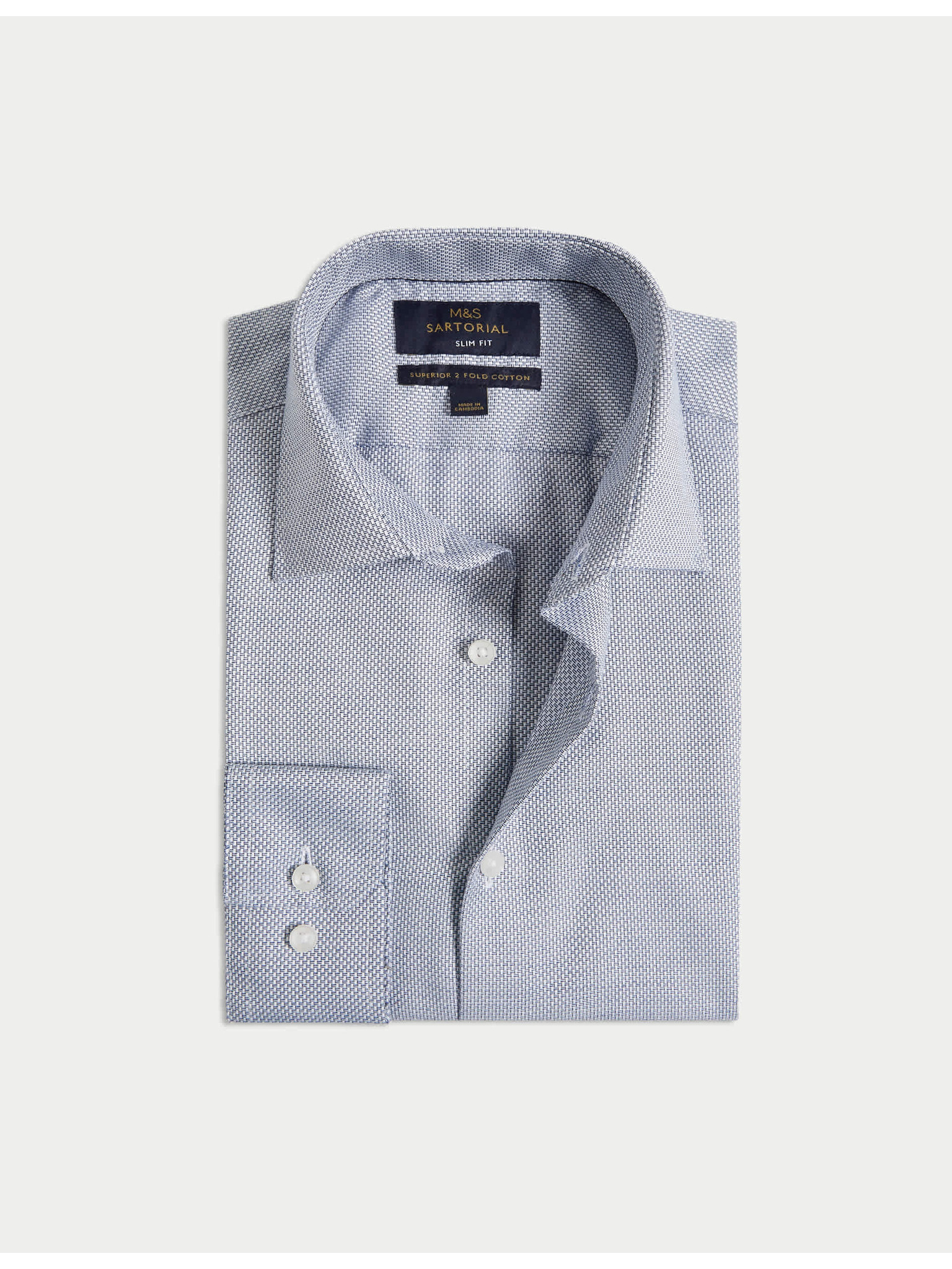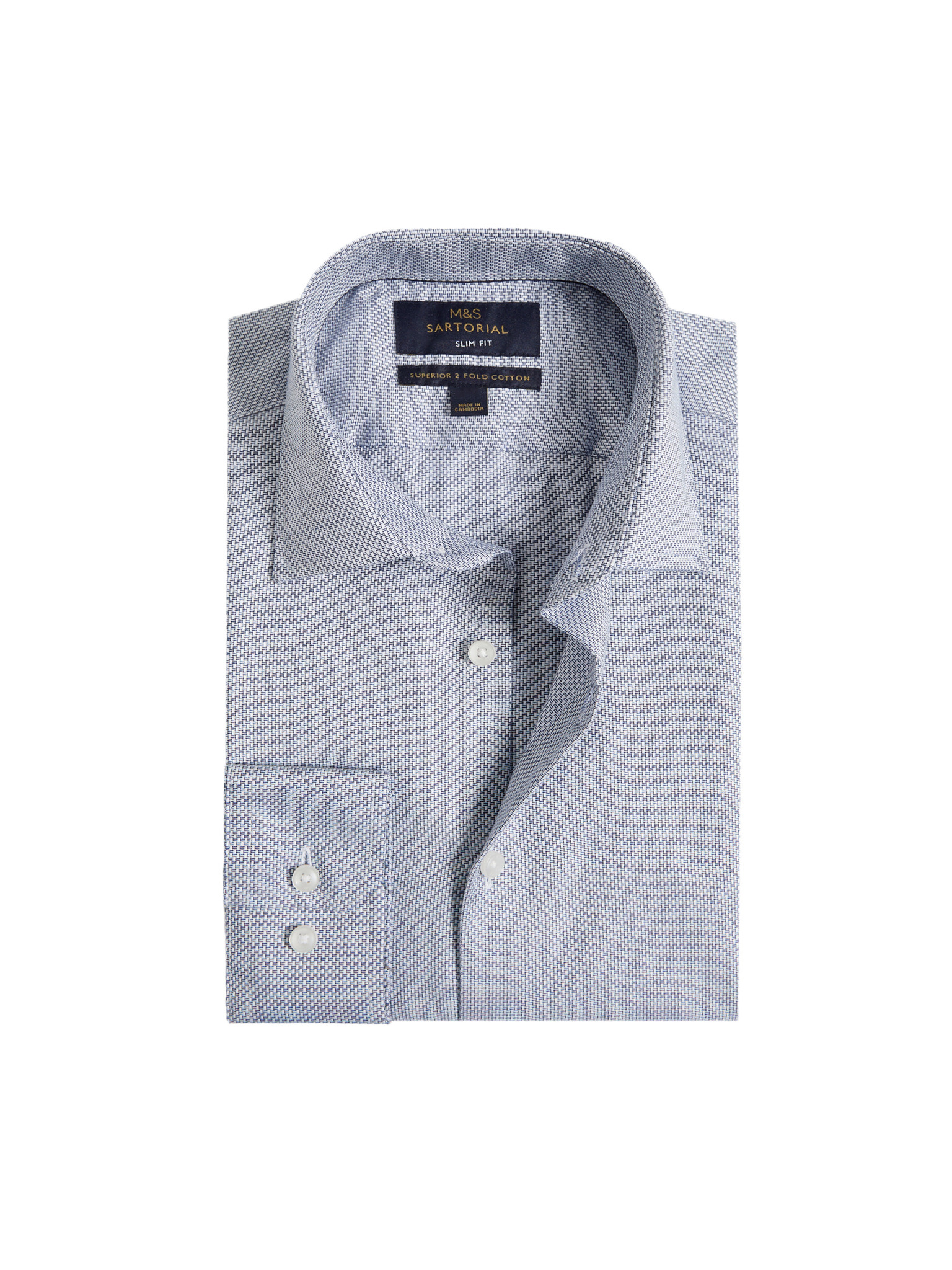 Кепрена риза с тесен силует от луксозен памук с двойна маншета Marks & Spencer морскосиня