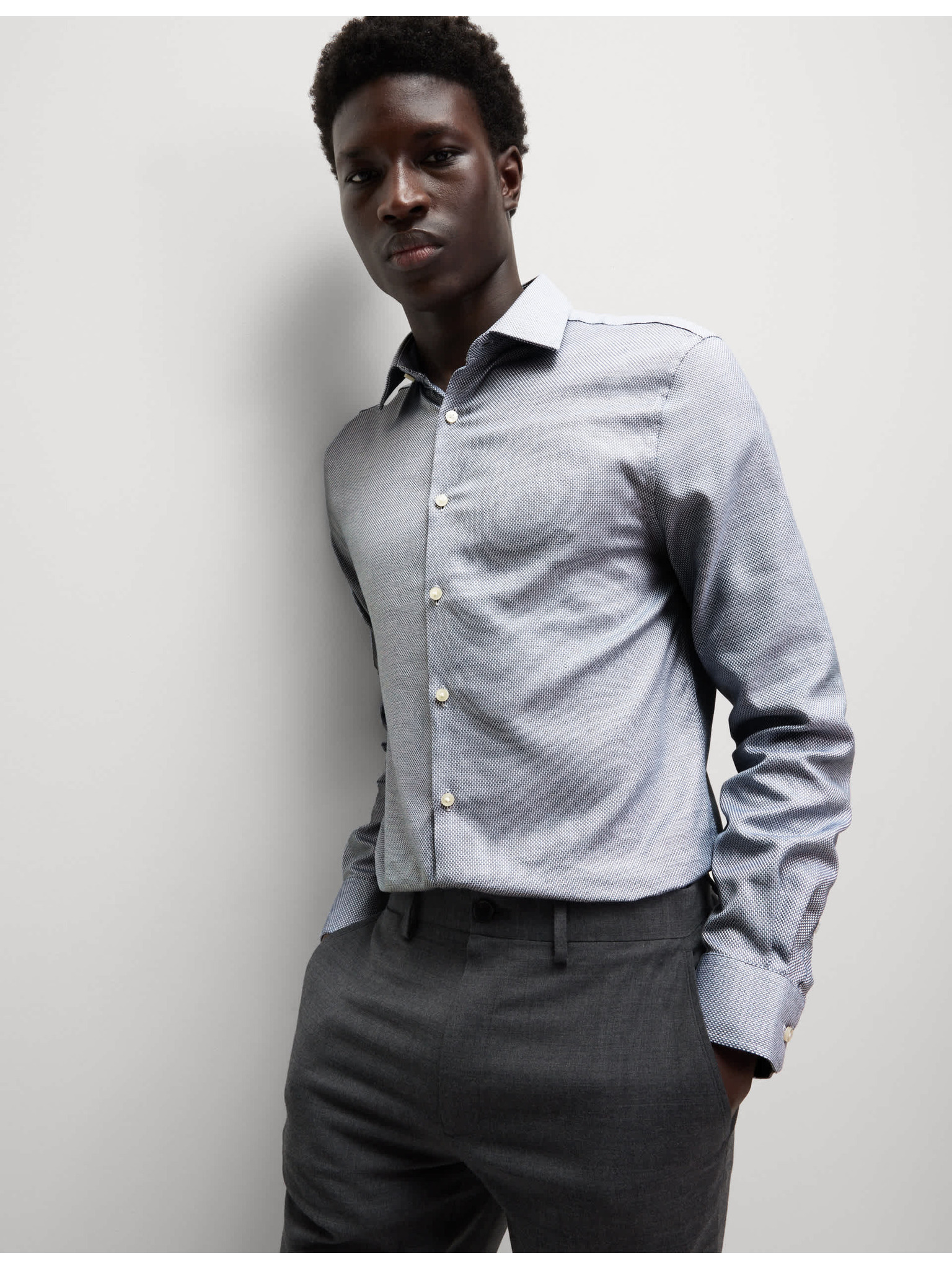 Бяла риза с тесен силует от памучна смес с незабавна грижа Marks & Spencer