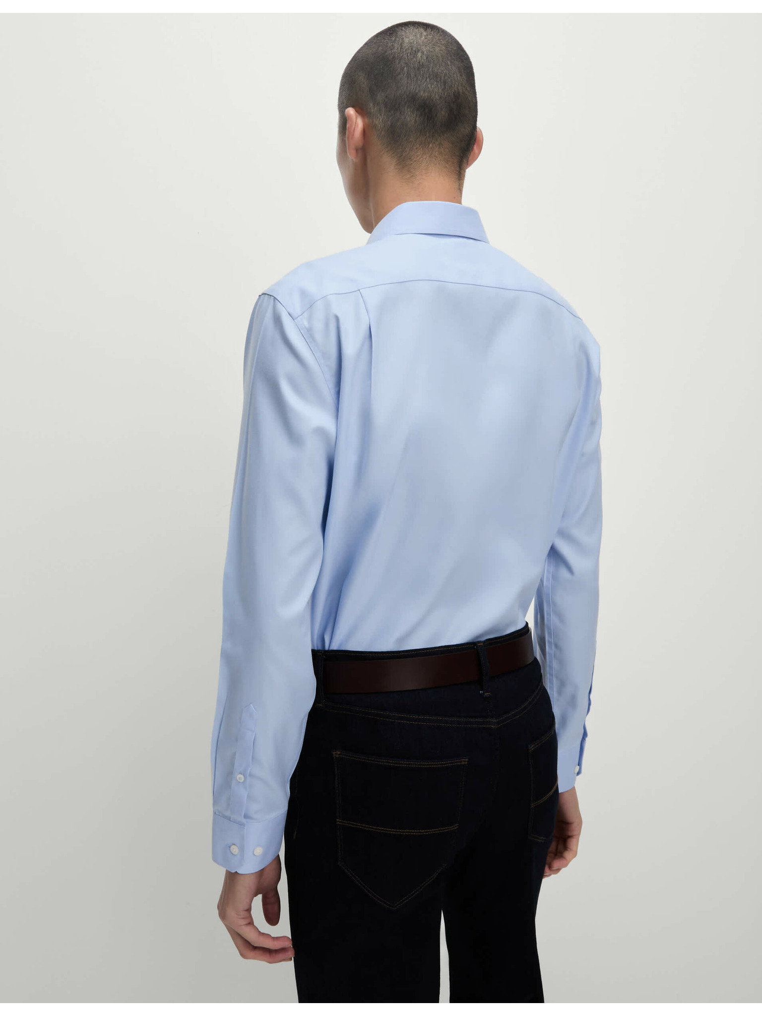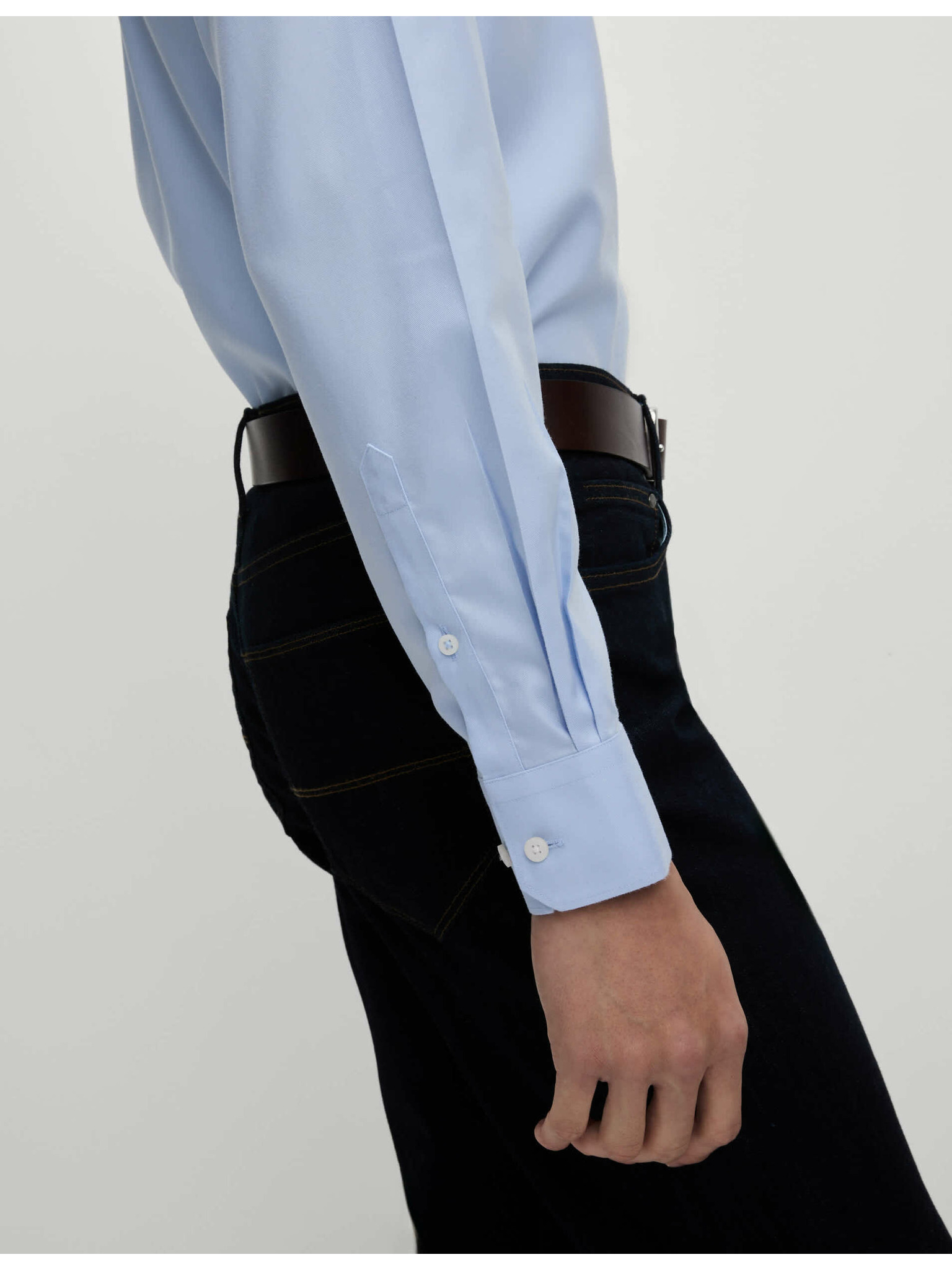 Риза с тънка кройка от луксозен памук с двоен маншет Marks & Spencer синьо