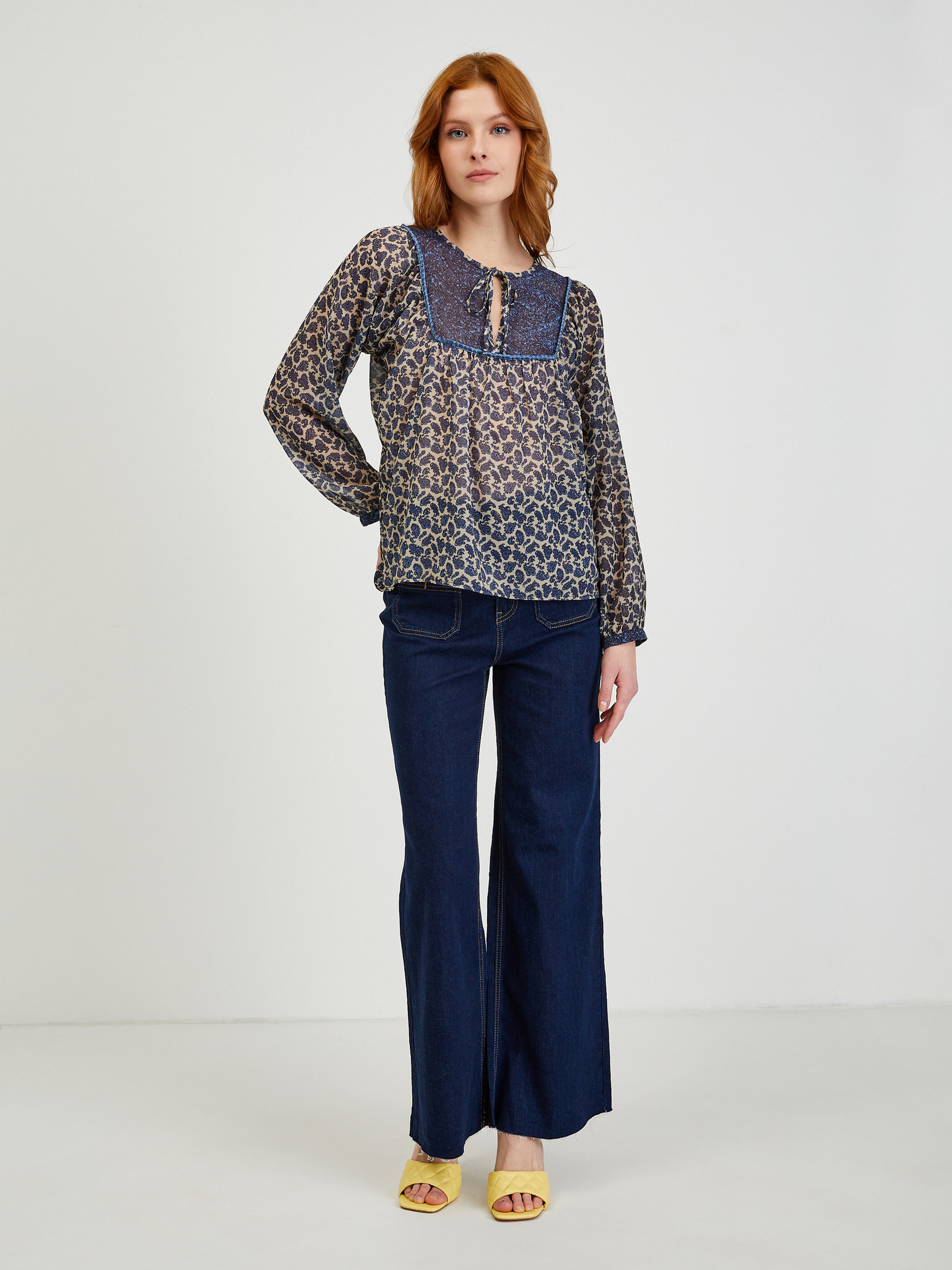 Тъмносиня блуза на цветя ORSAY