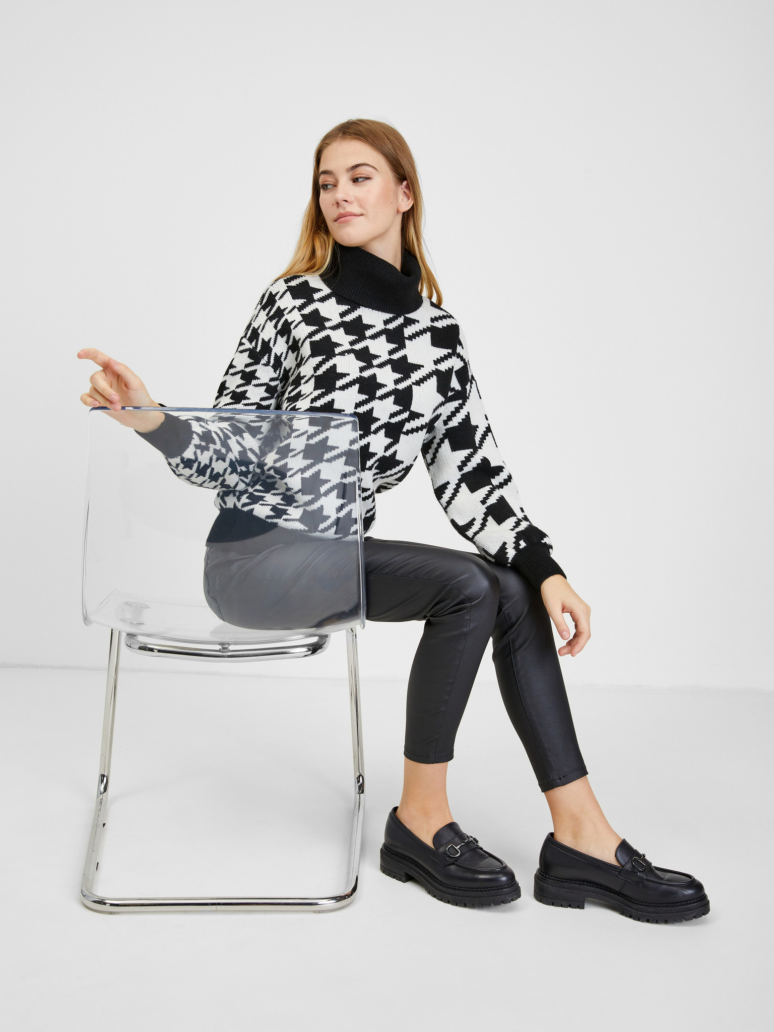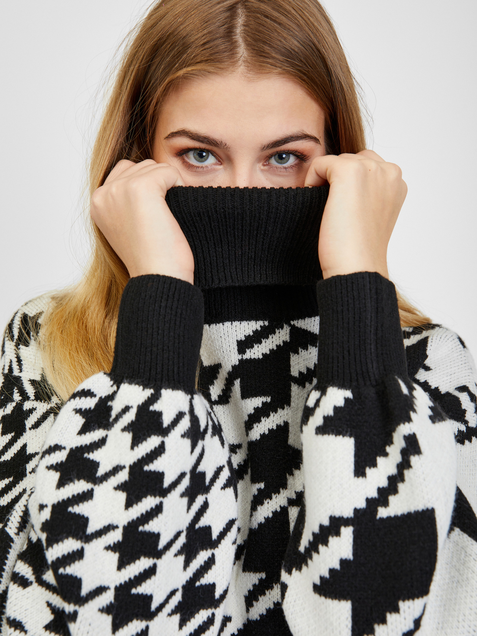 Бежов дамски пуловер с висока яка ORSAY
