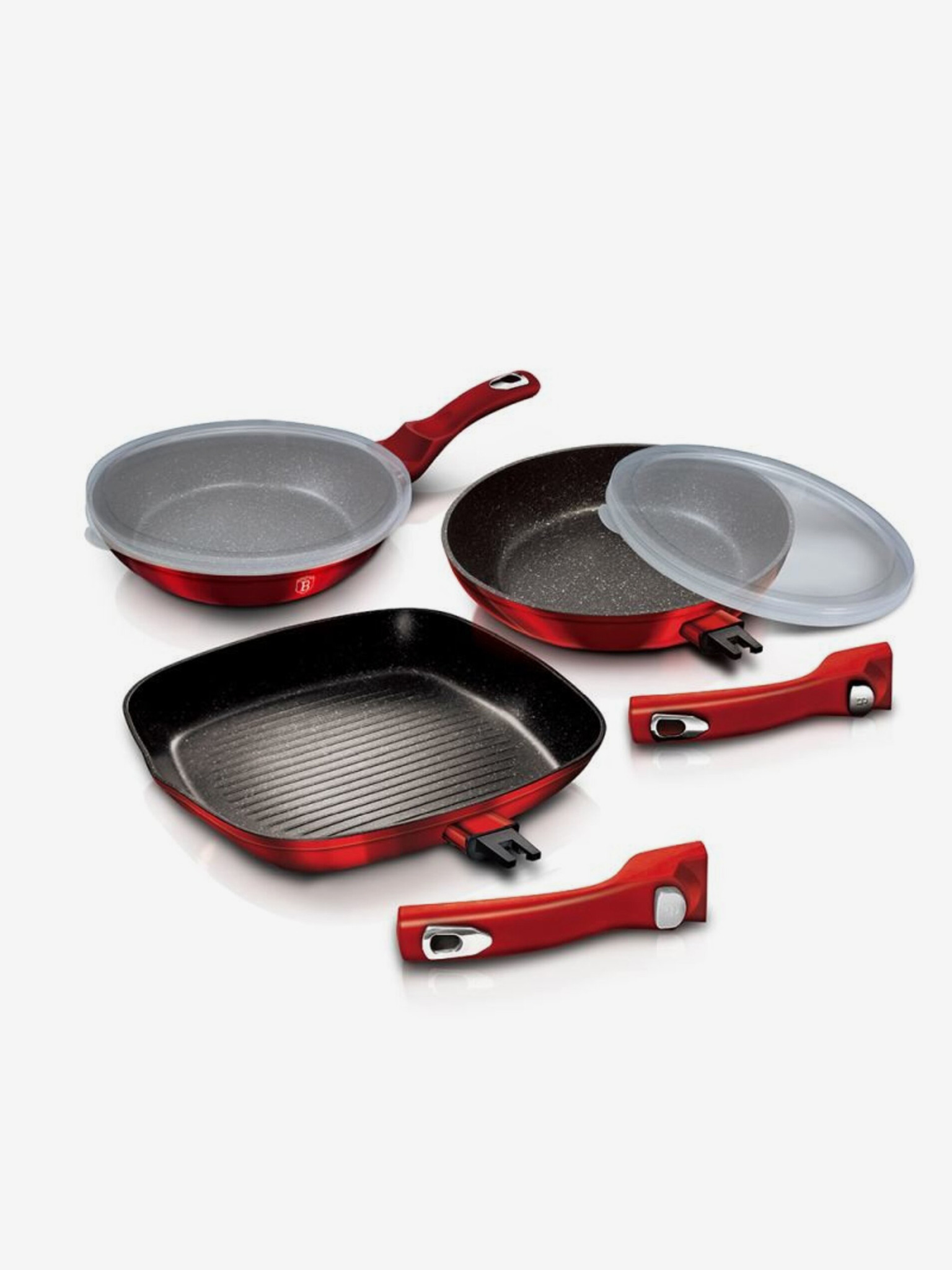 Комплект съдове с подвижна дръжка 12 бр. Burgundy Metallic Line BERLINGERHAUS