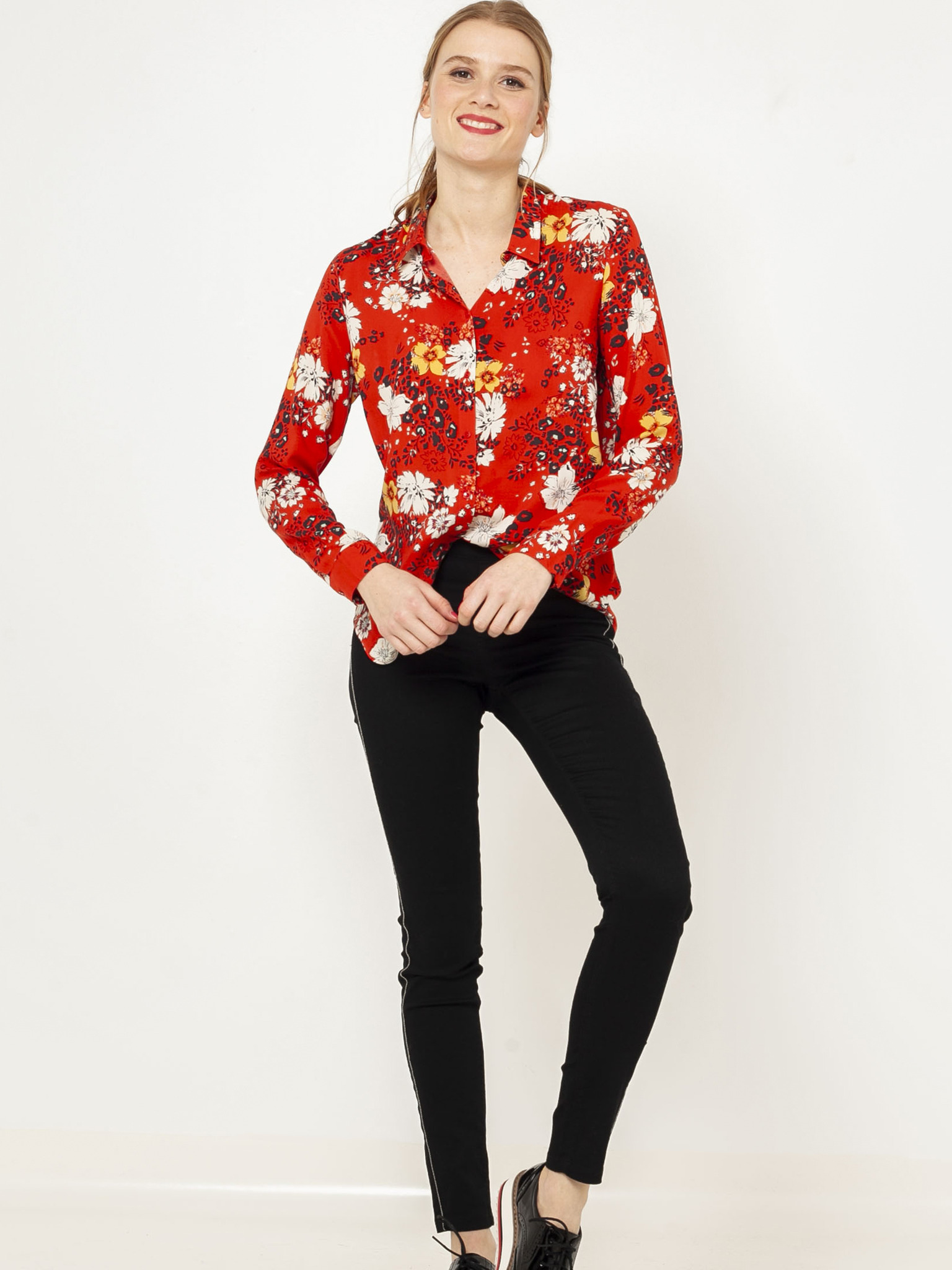 Тухленочервени разкроени панталони CAMAIEU