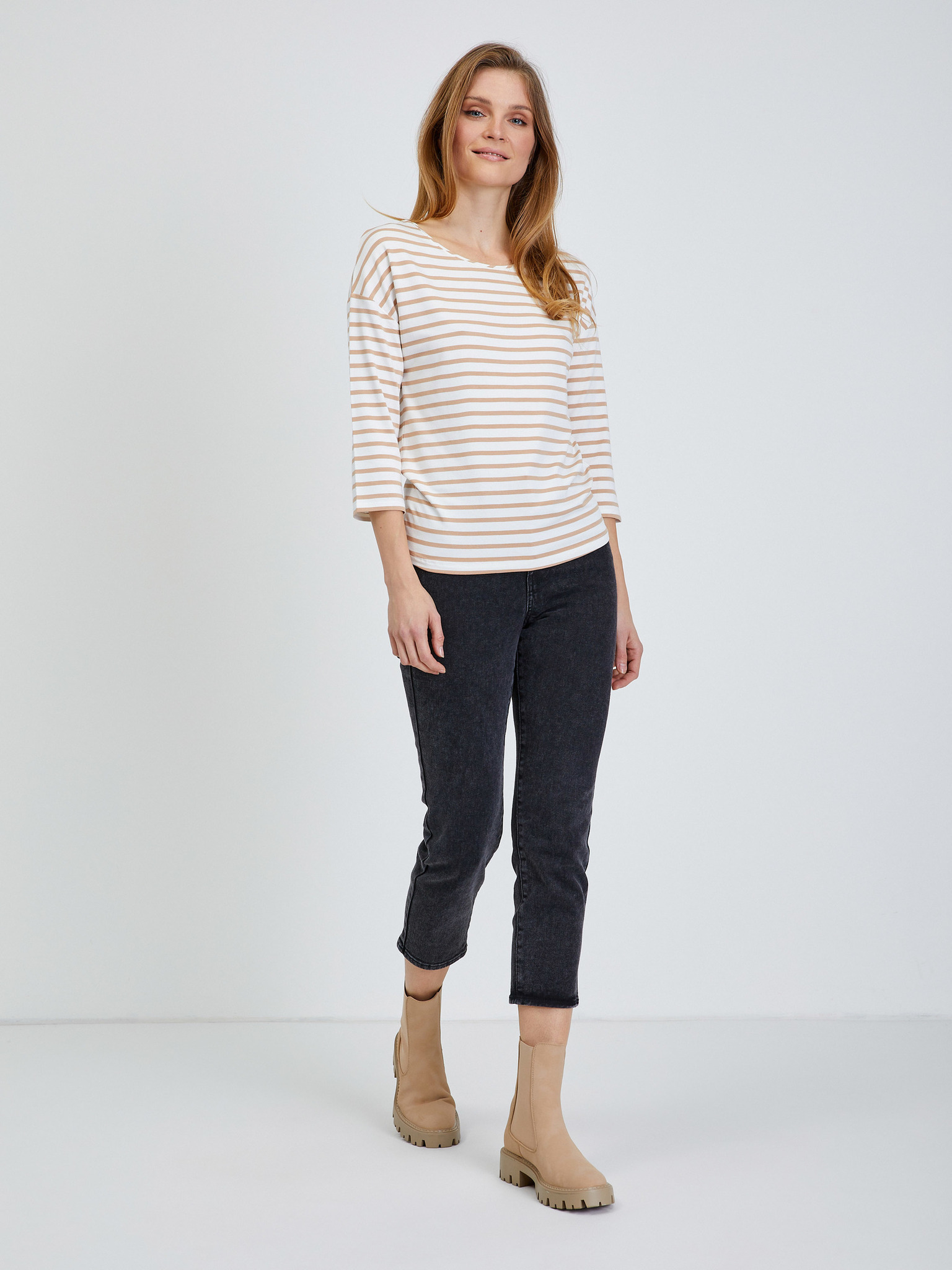 Бежова дамска свободна основна тениска с три-четвърти ръкави ZOOT.lab Leticia