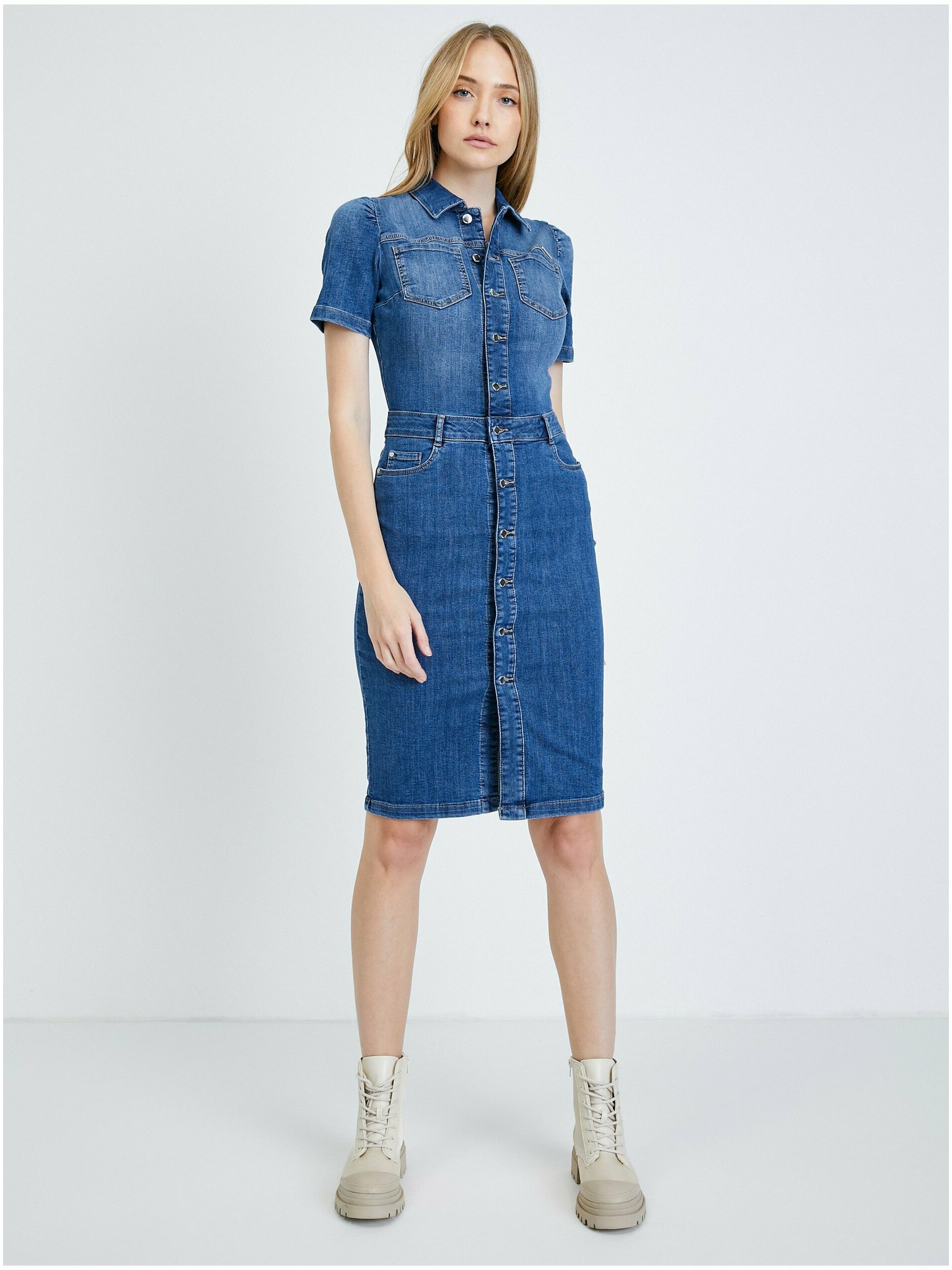 Синя дамска рокля с риза Moodo