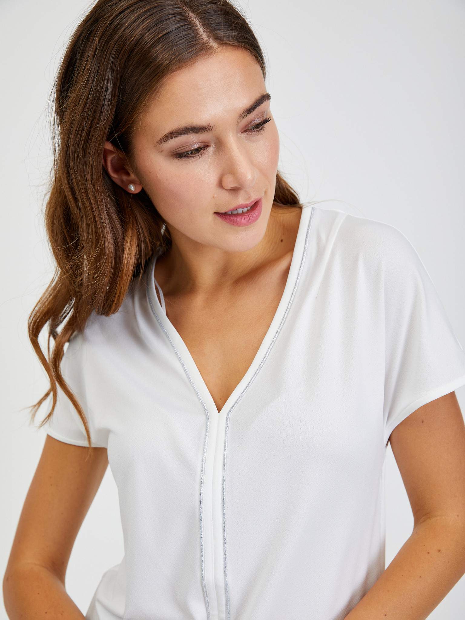 Кремава дамска тениска с къс ръкав ORSAY