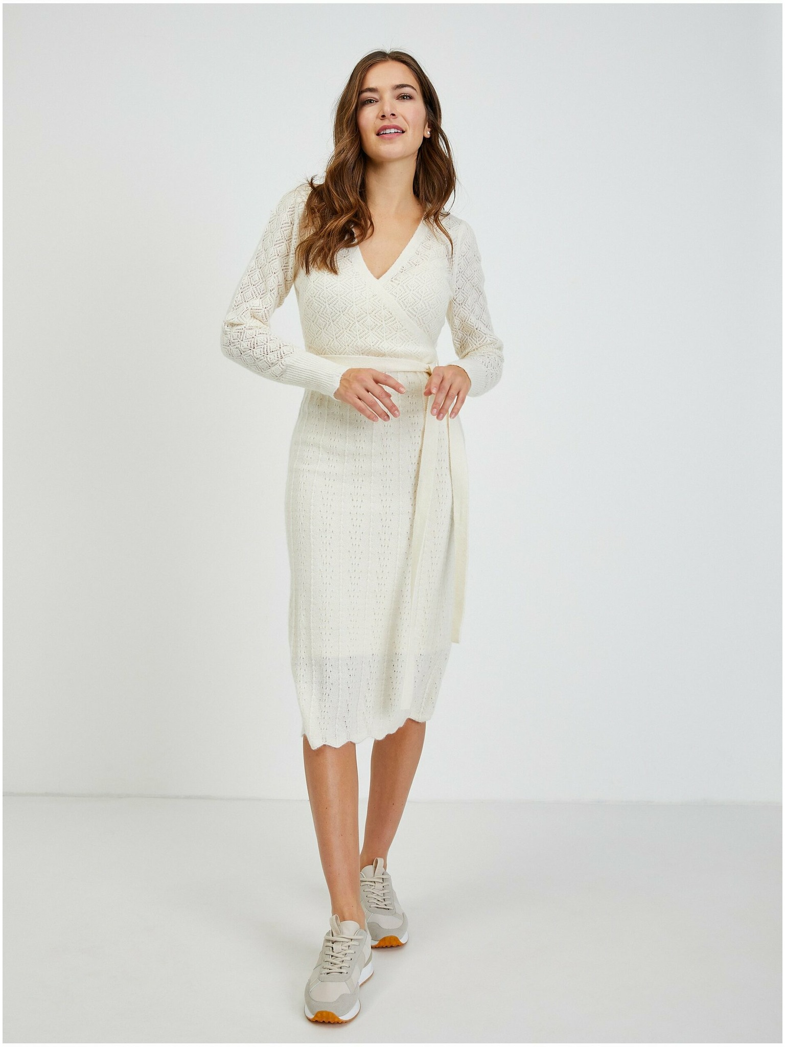 Кремава дамска рокля-пуловер ORSAY