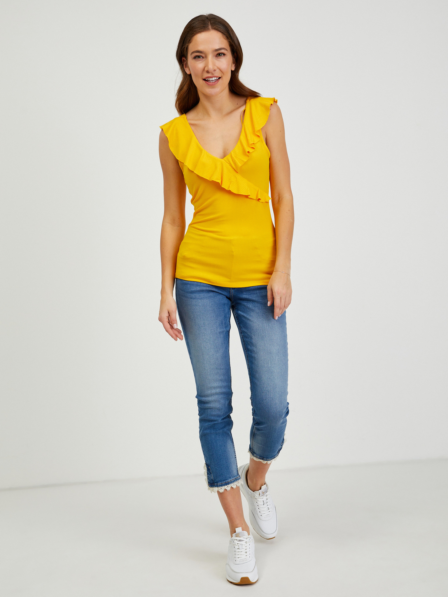 Жълта дамска тениска с волани ORSAY