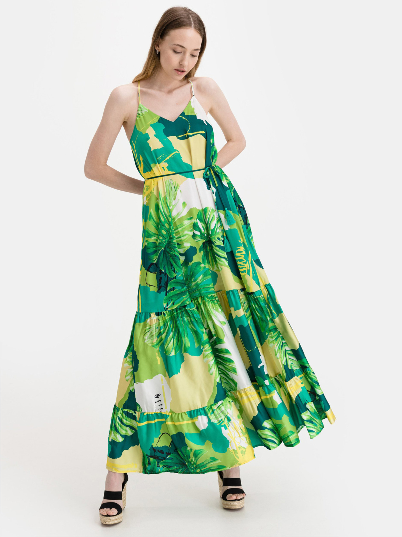 Черно-жълта дамска щампована макси рокля ORSAY