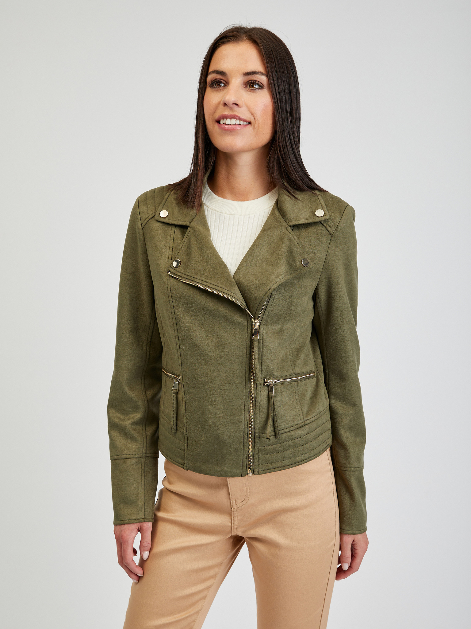 Зелено дамско яке с изкуствена кожа от велур ORSAY
