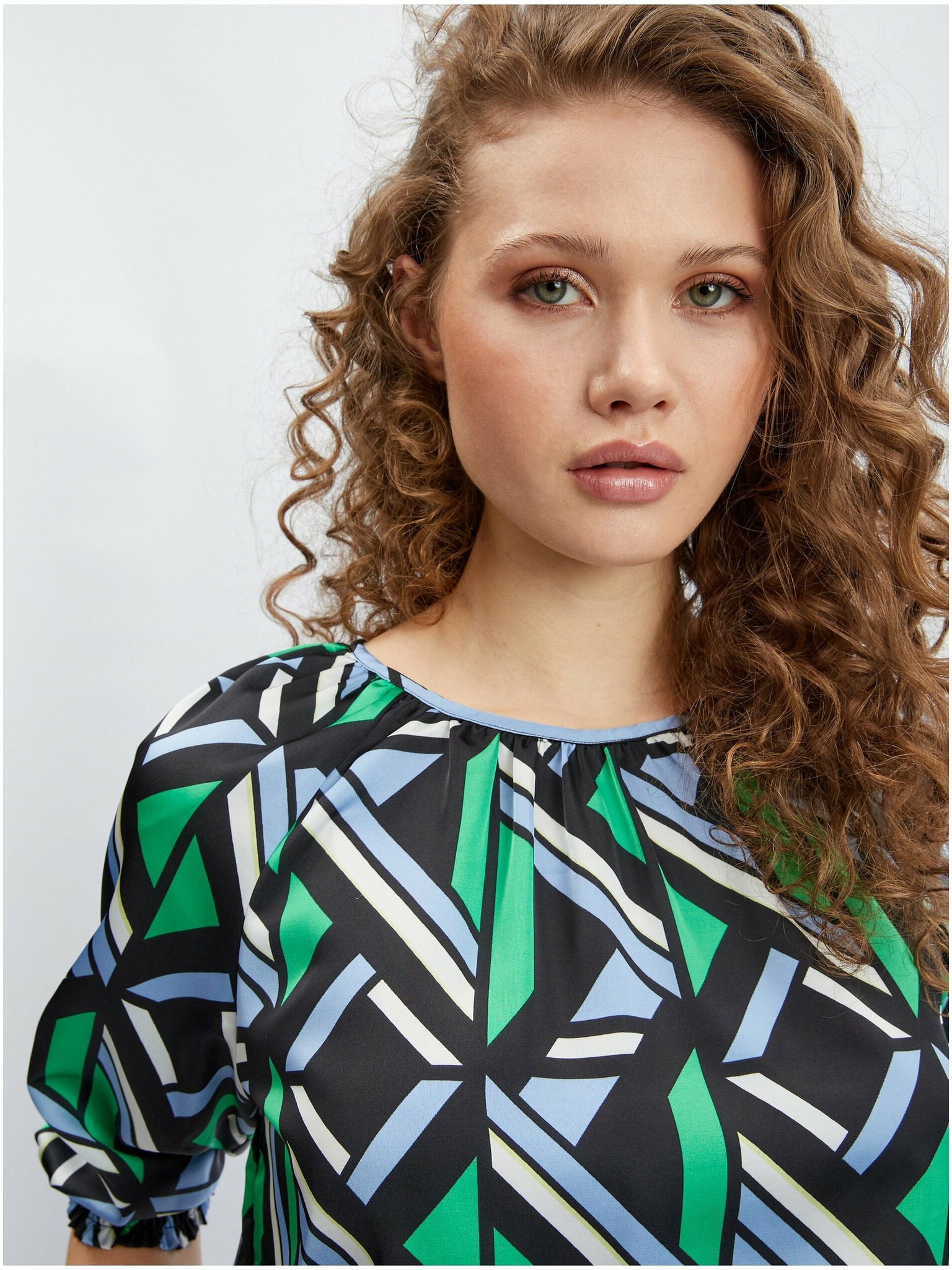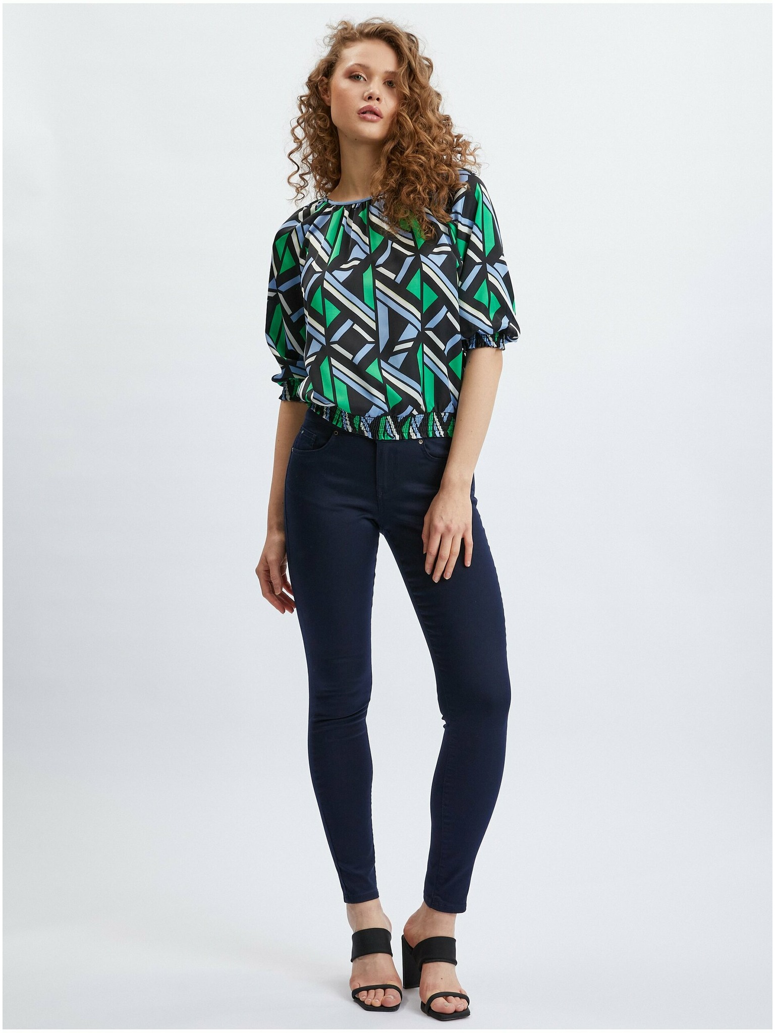 Черно-зелена дамска блуза с десен ORSAY