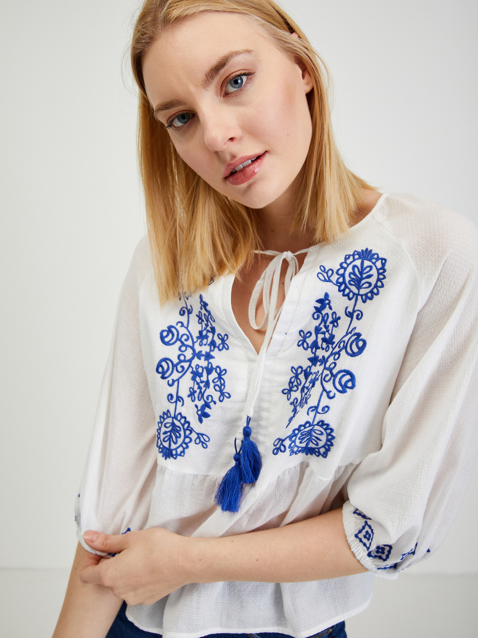 Бяла свободна блуза