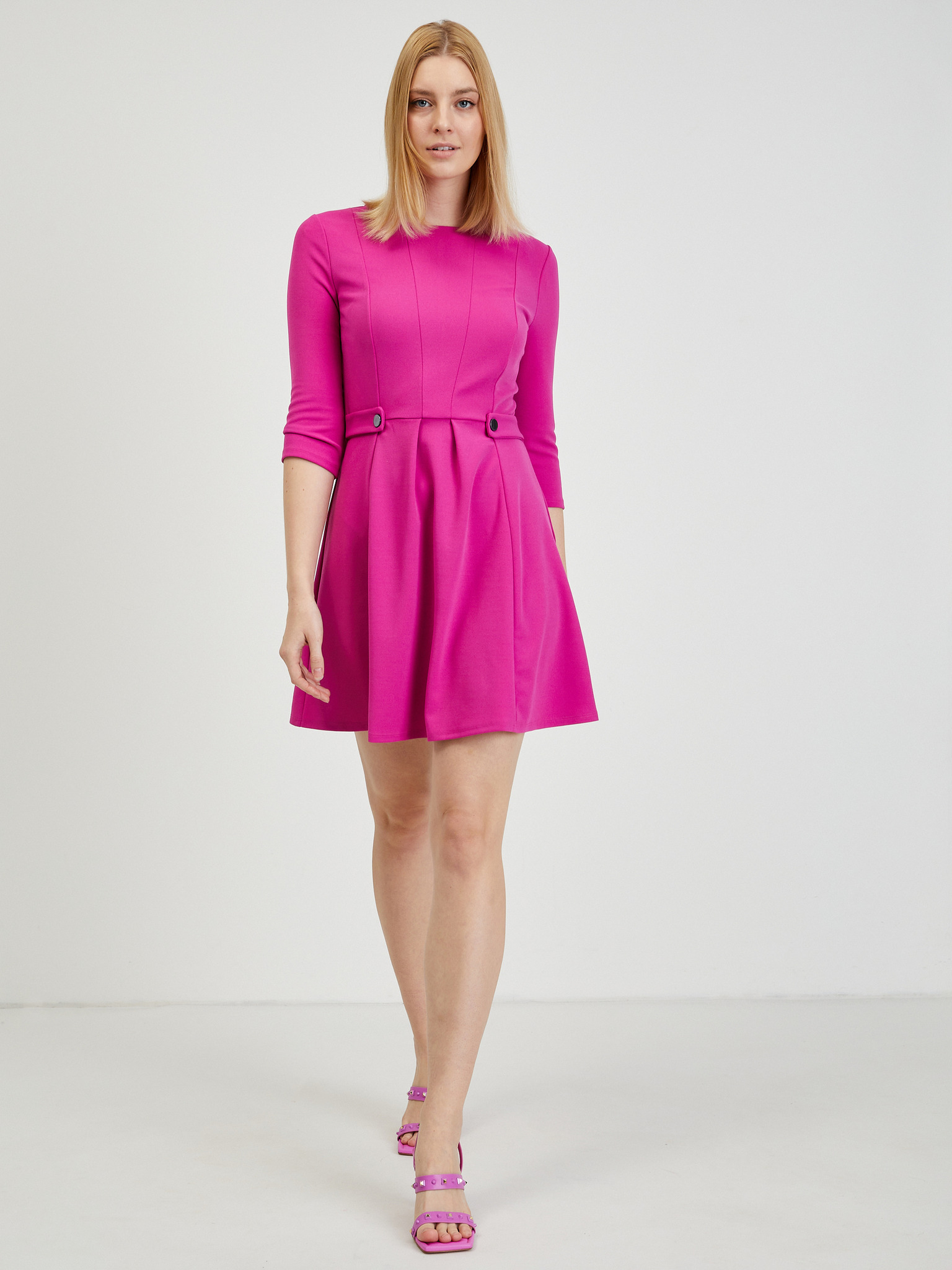 Неоново розови мини рокля с красиво деколте