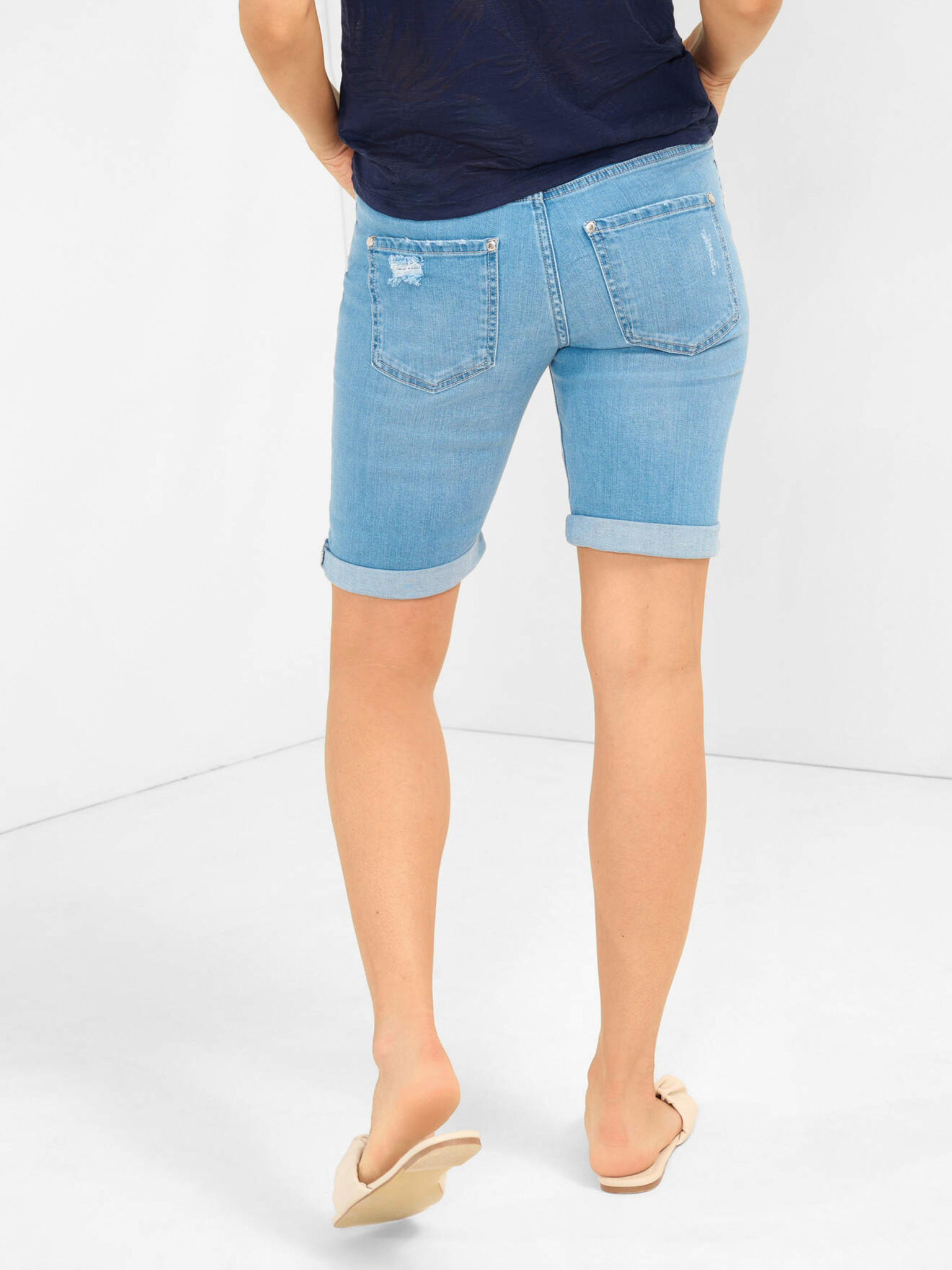 Тъмносини дамски къси панталони с шарка SAM 73 Tamara