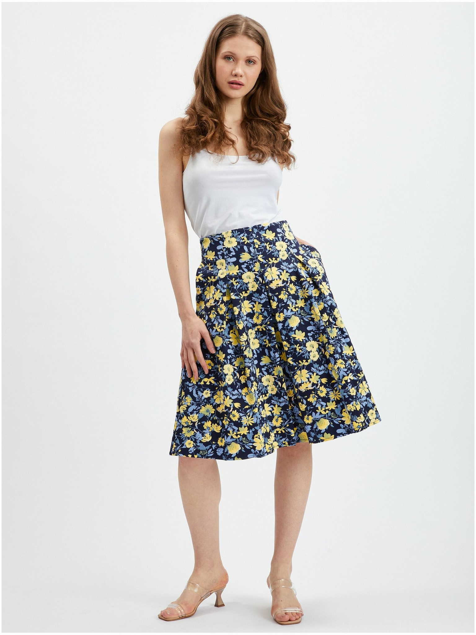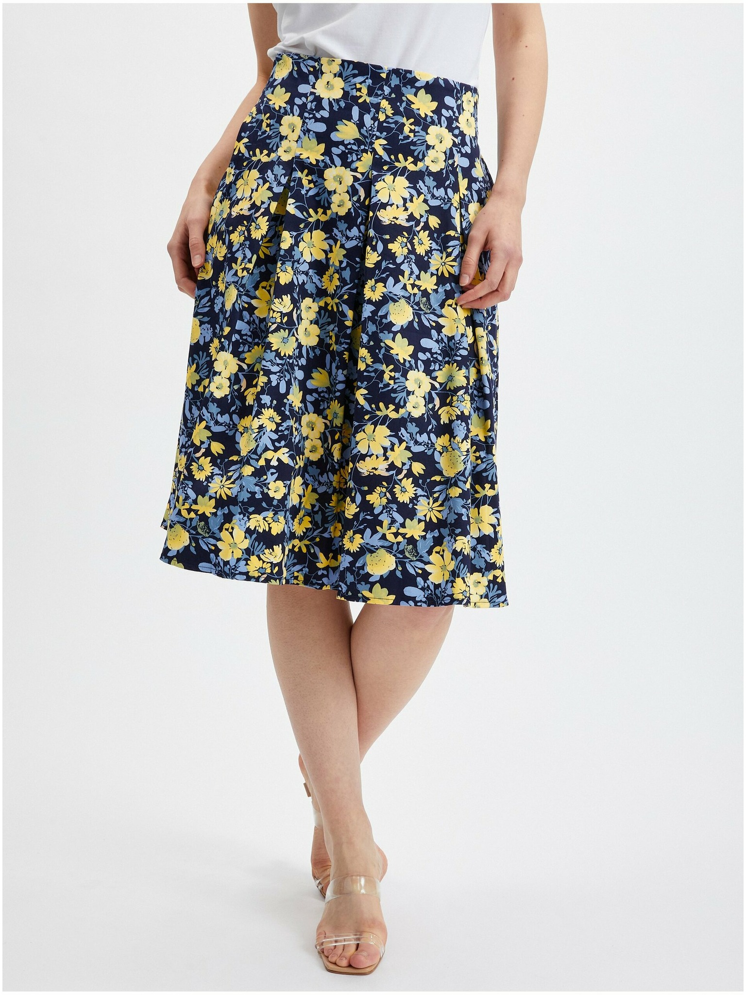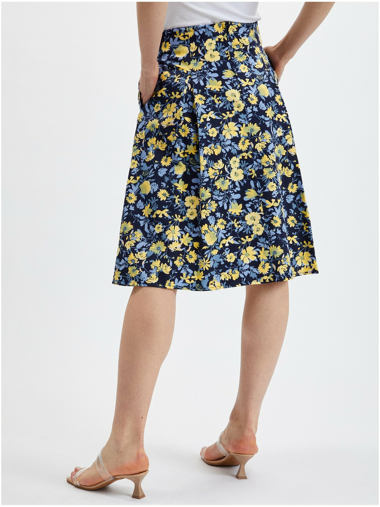 Черна дамска миди пола с флорален десен ORSAY