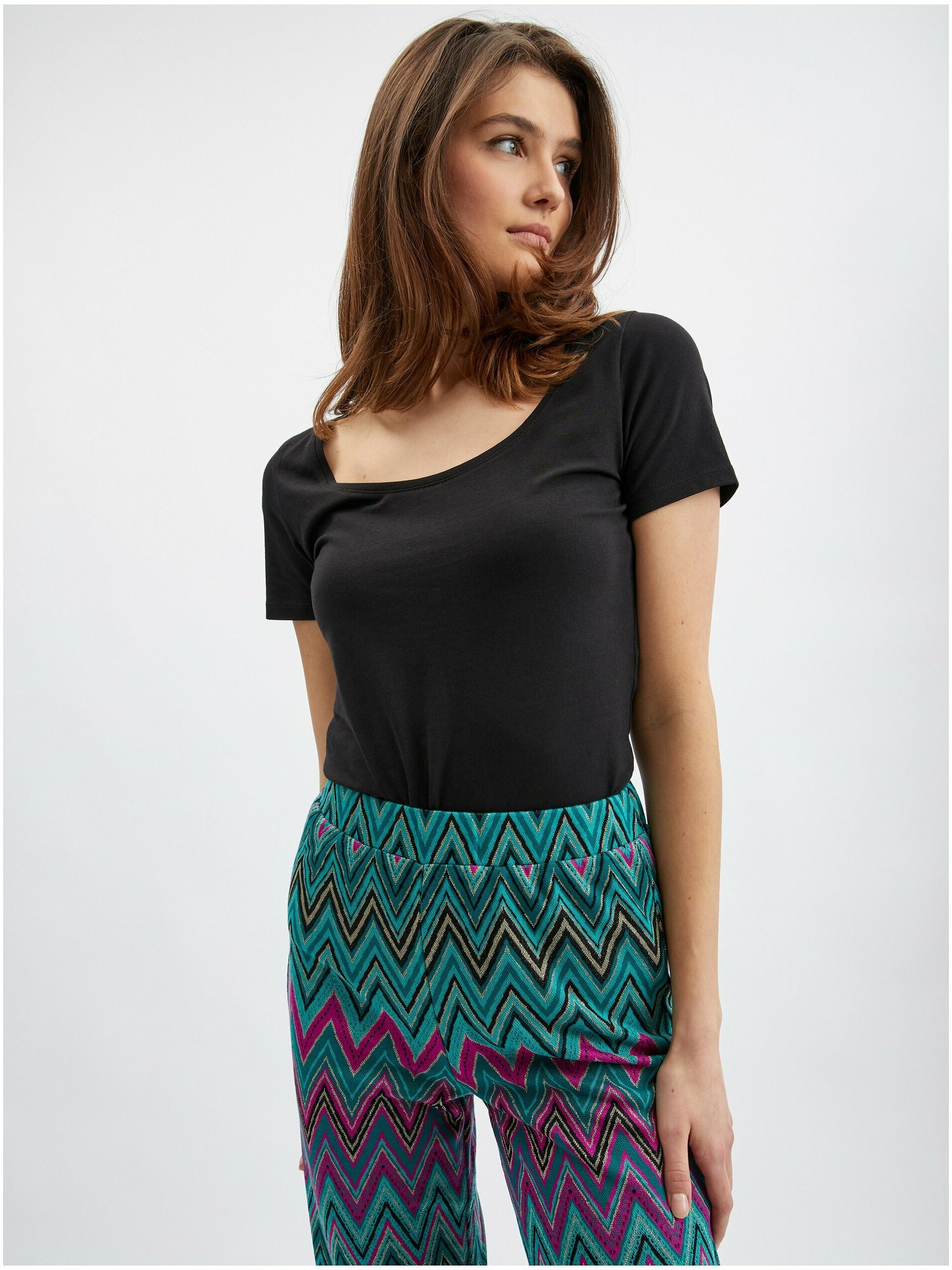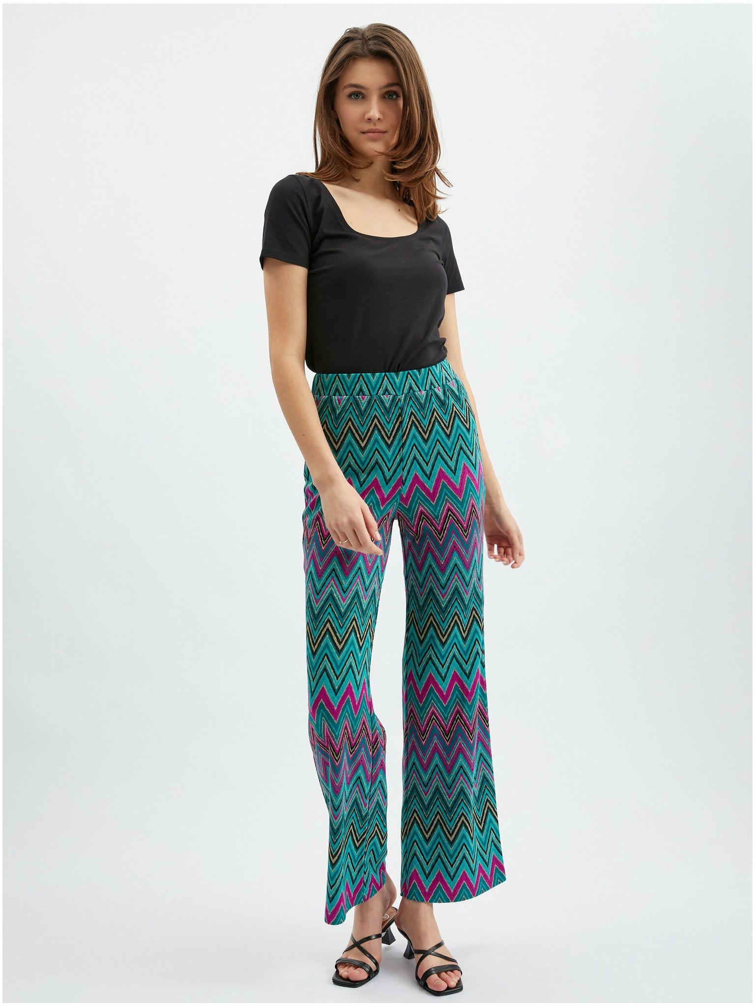 Розово-зелен дамски панталон с десен ORSAY