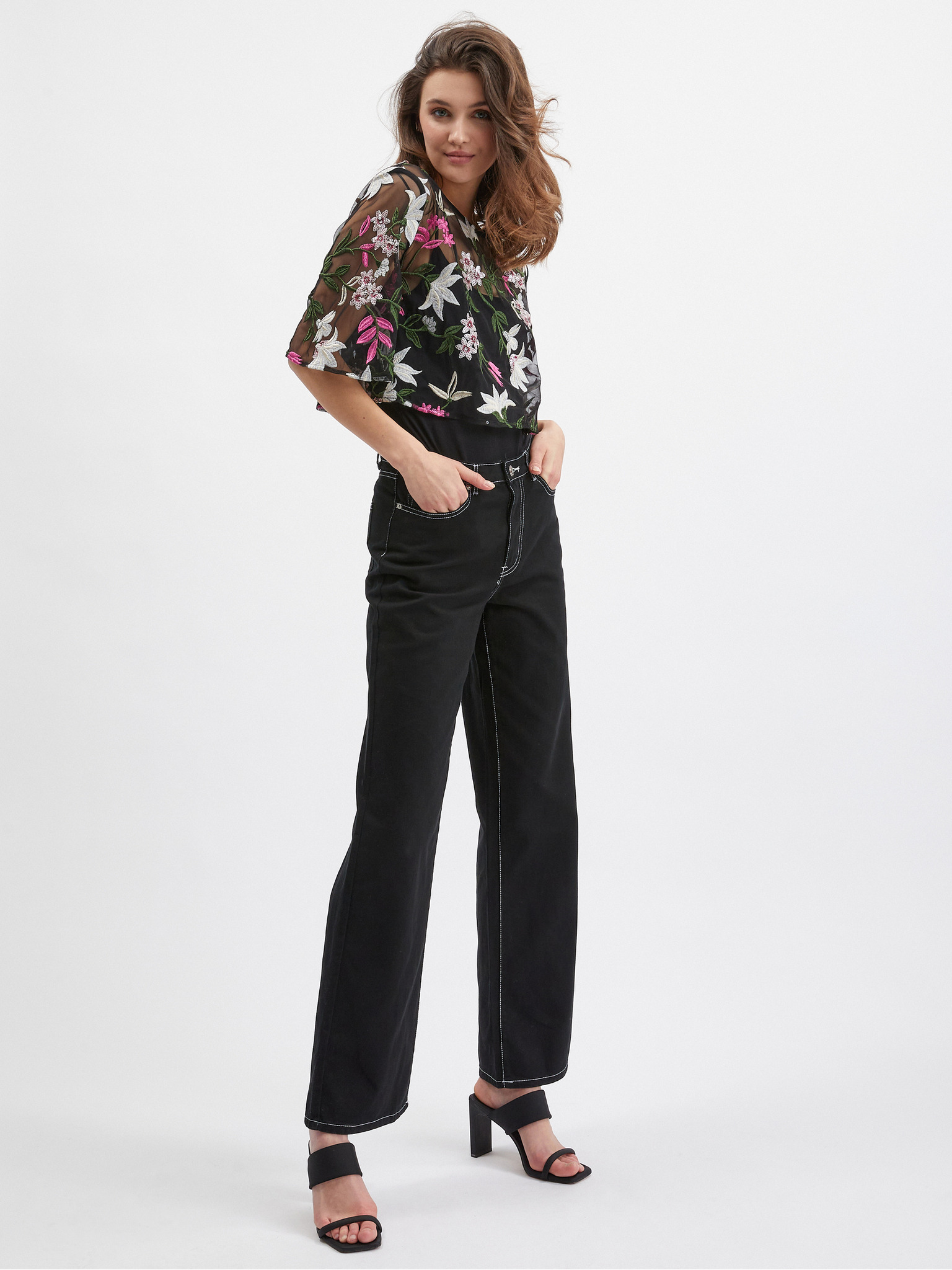 Черна дамска блуза с цветен принт ORSAY