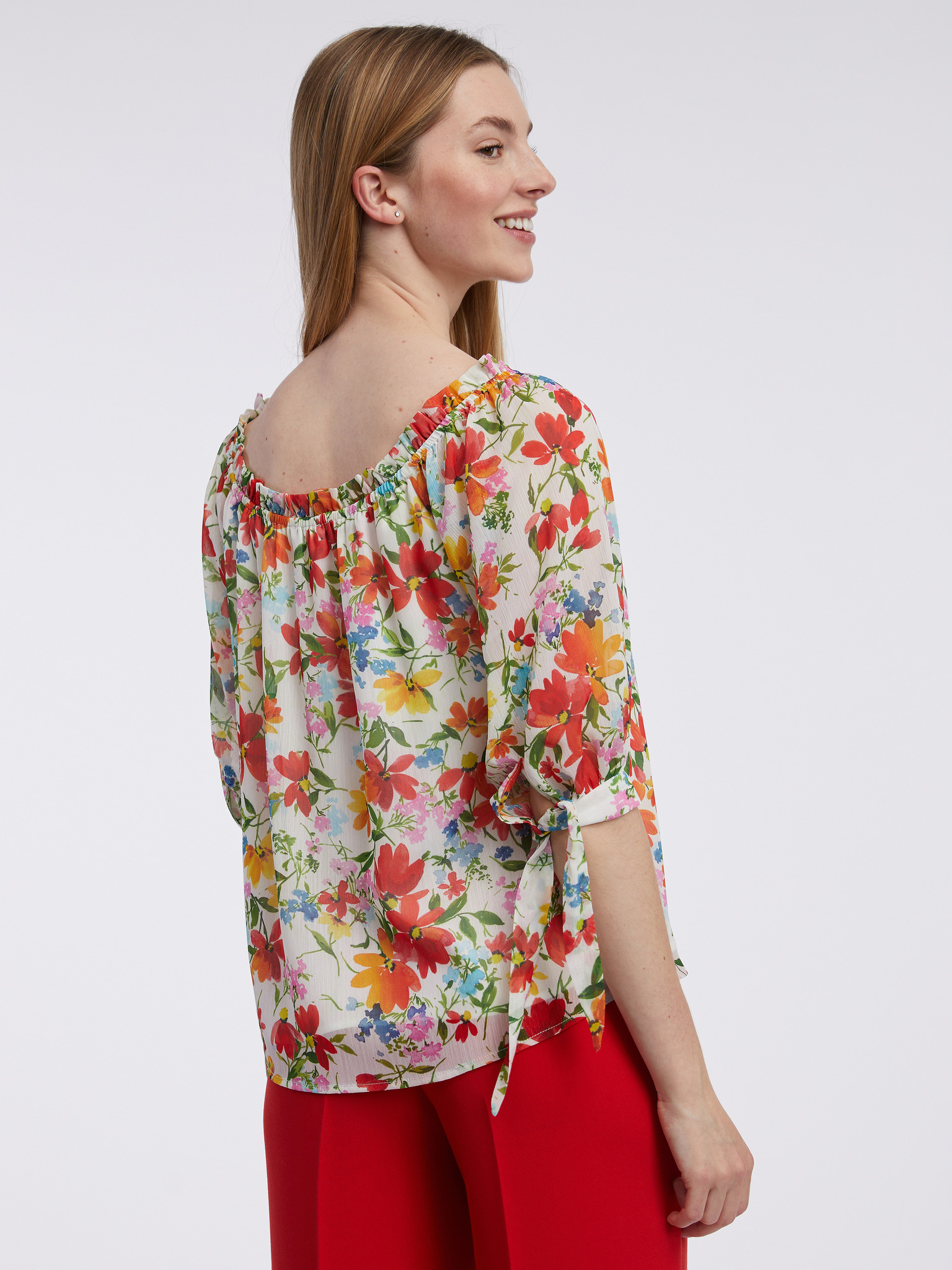 Флорален топ с V-образно деколте