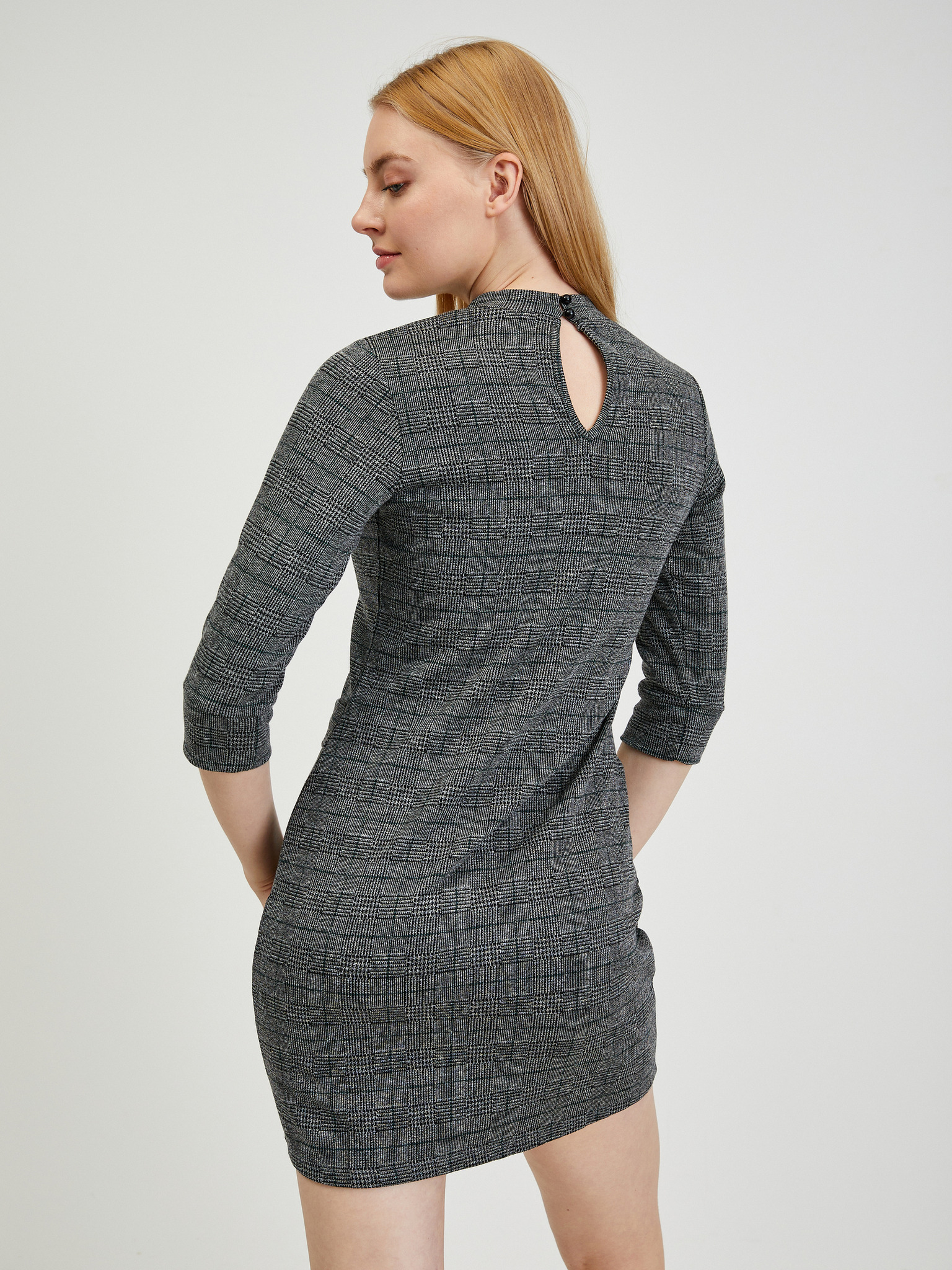 Сива дамска рокля на каре ORSAY