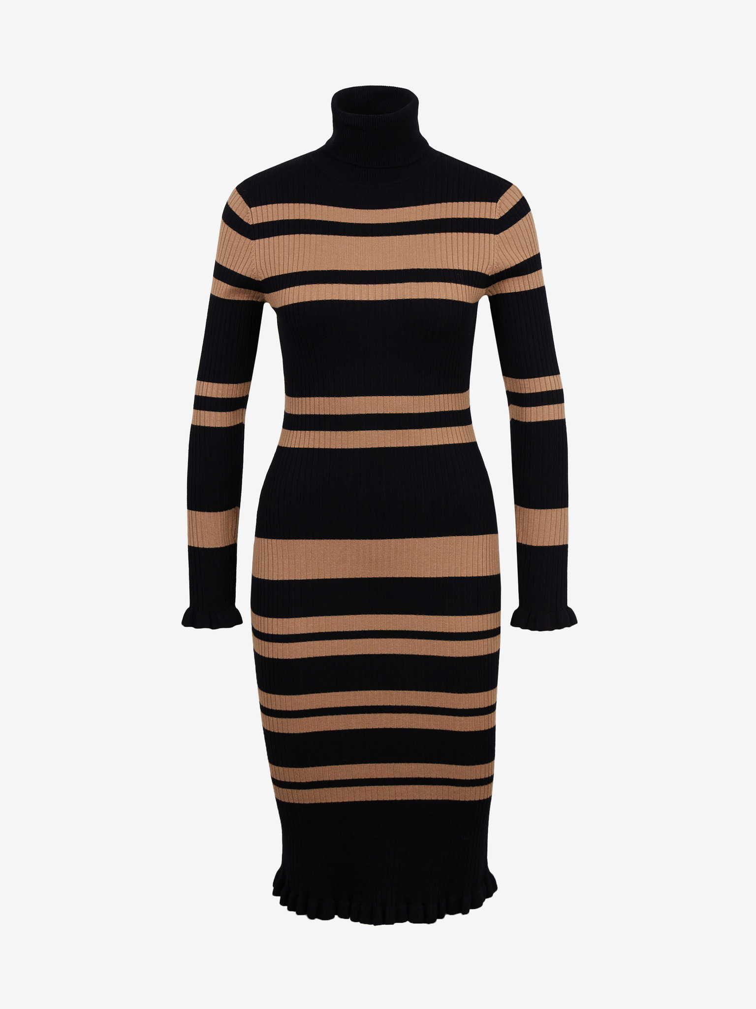 Кафяво-черна дамска рокля на райе ORSAY