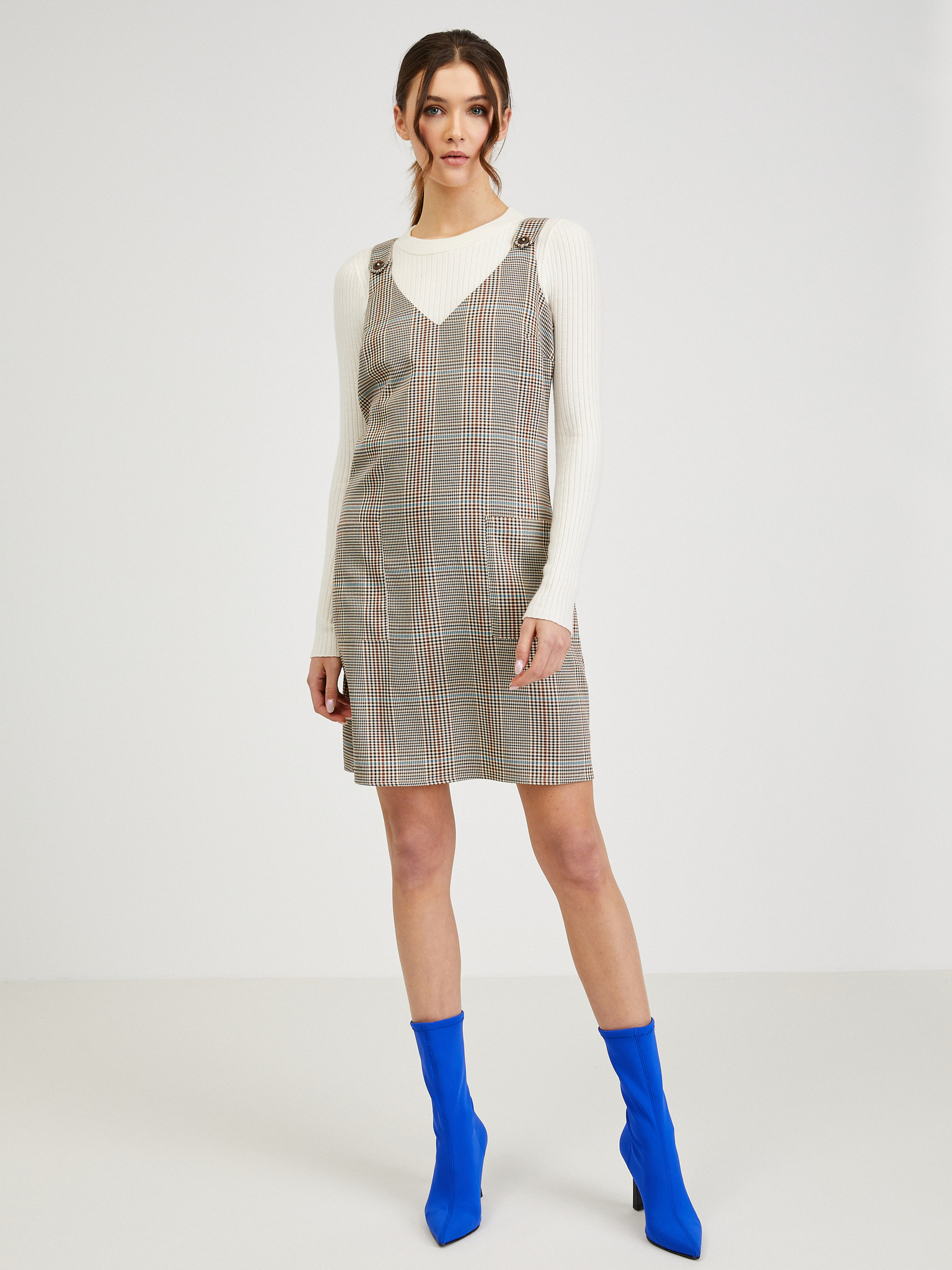 Бежово-кафява дамска рокля на шарки Moodo