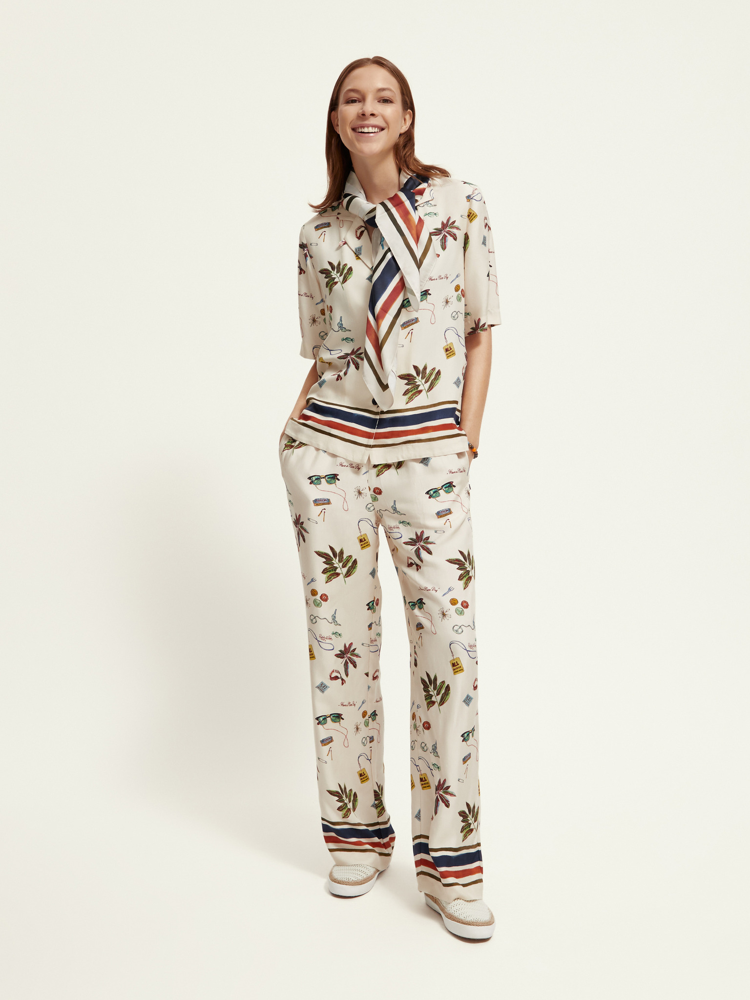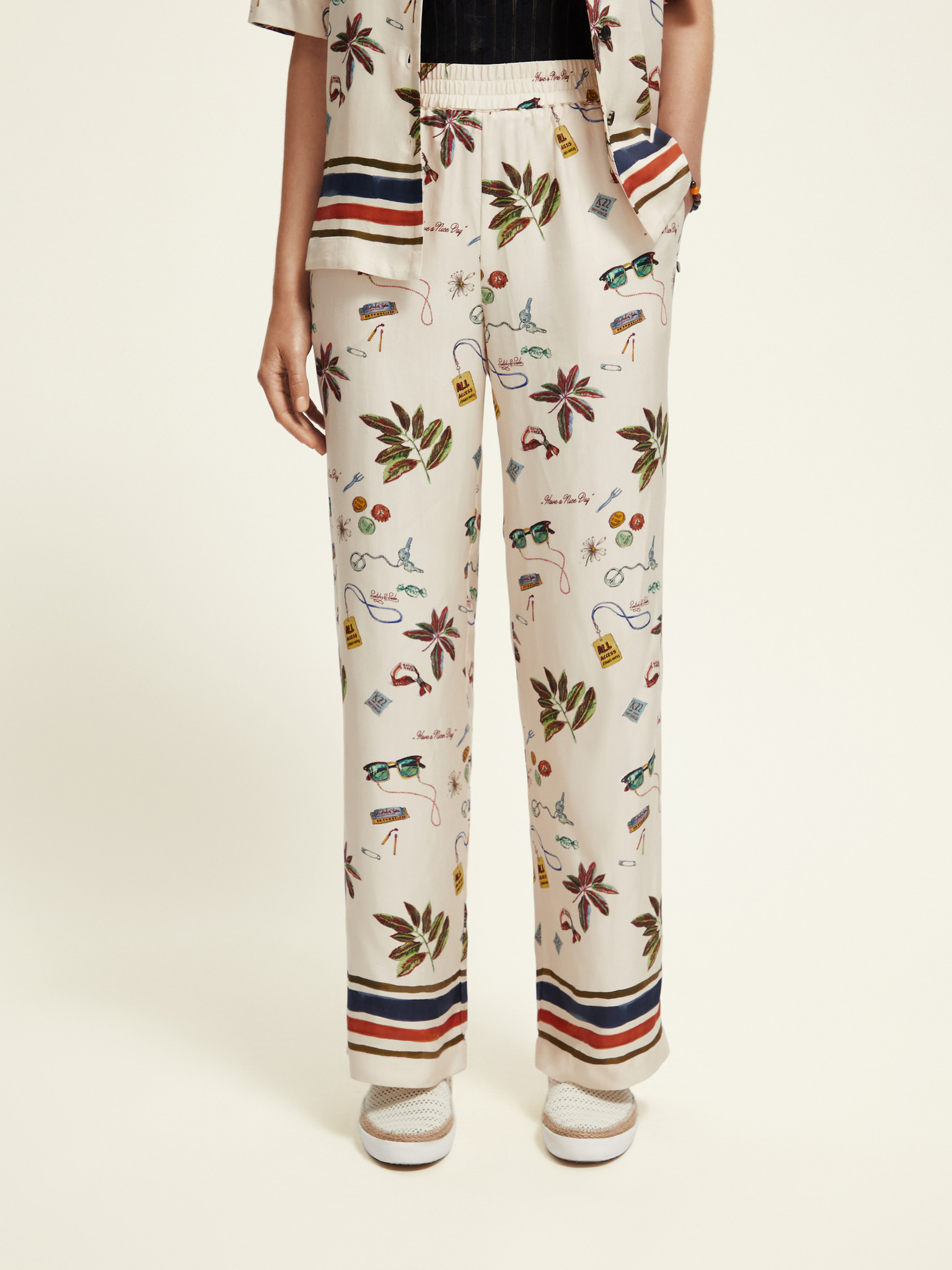 Кремави дамски панталони с шарки Scotch & Soda Gia Starfish