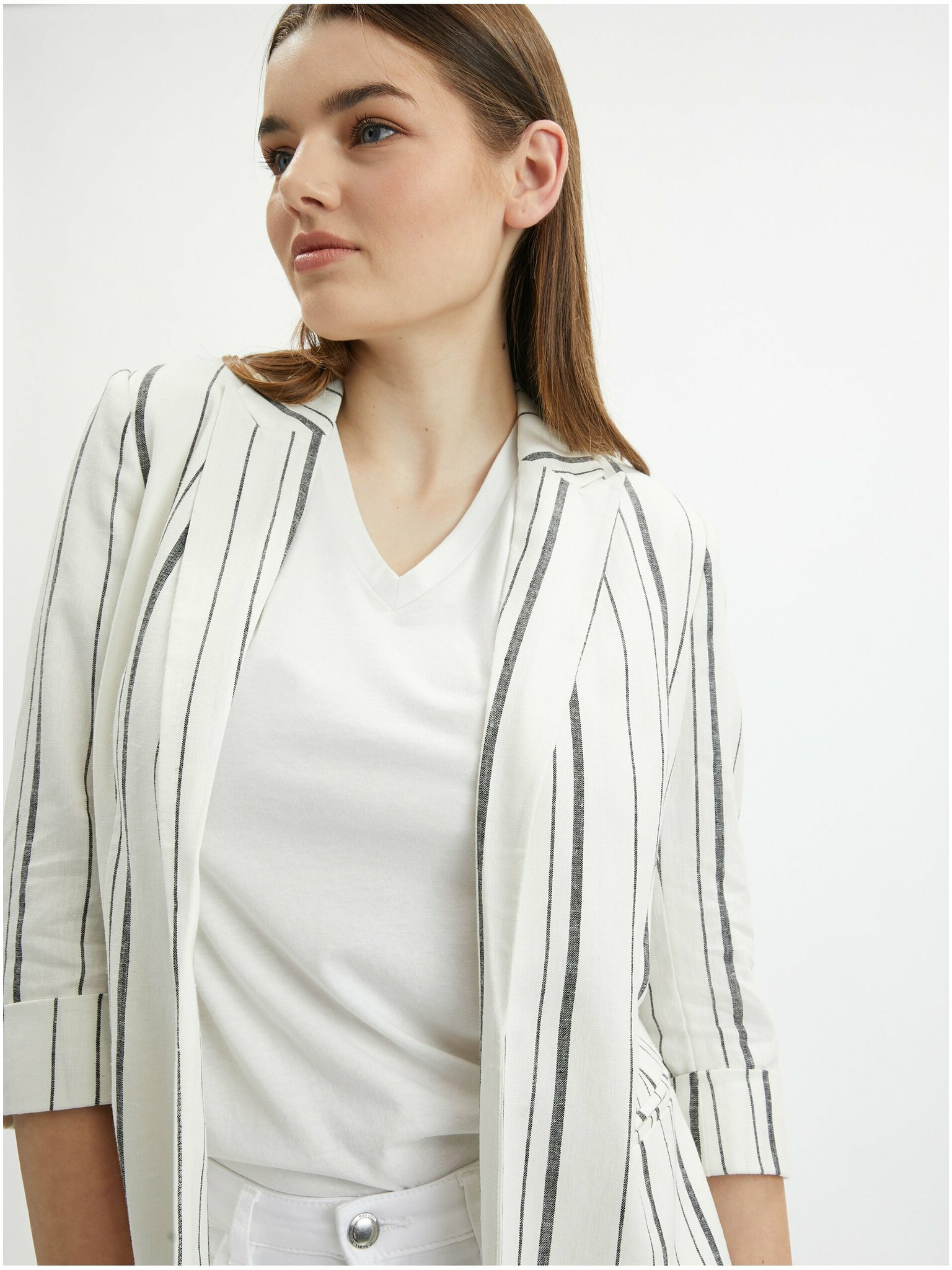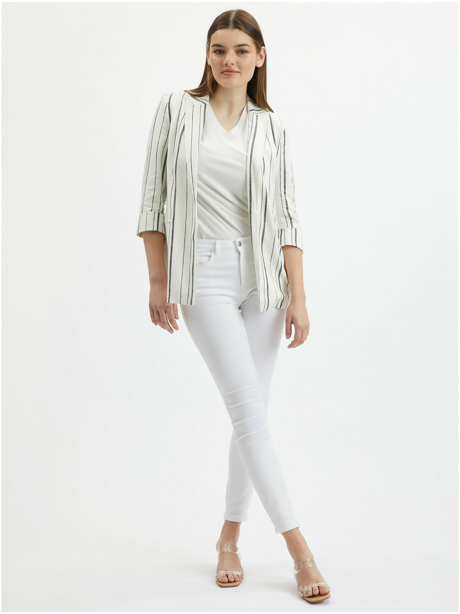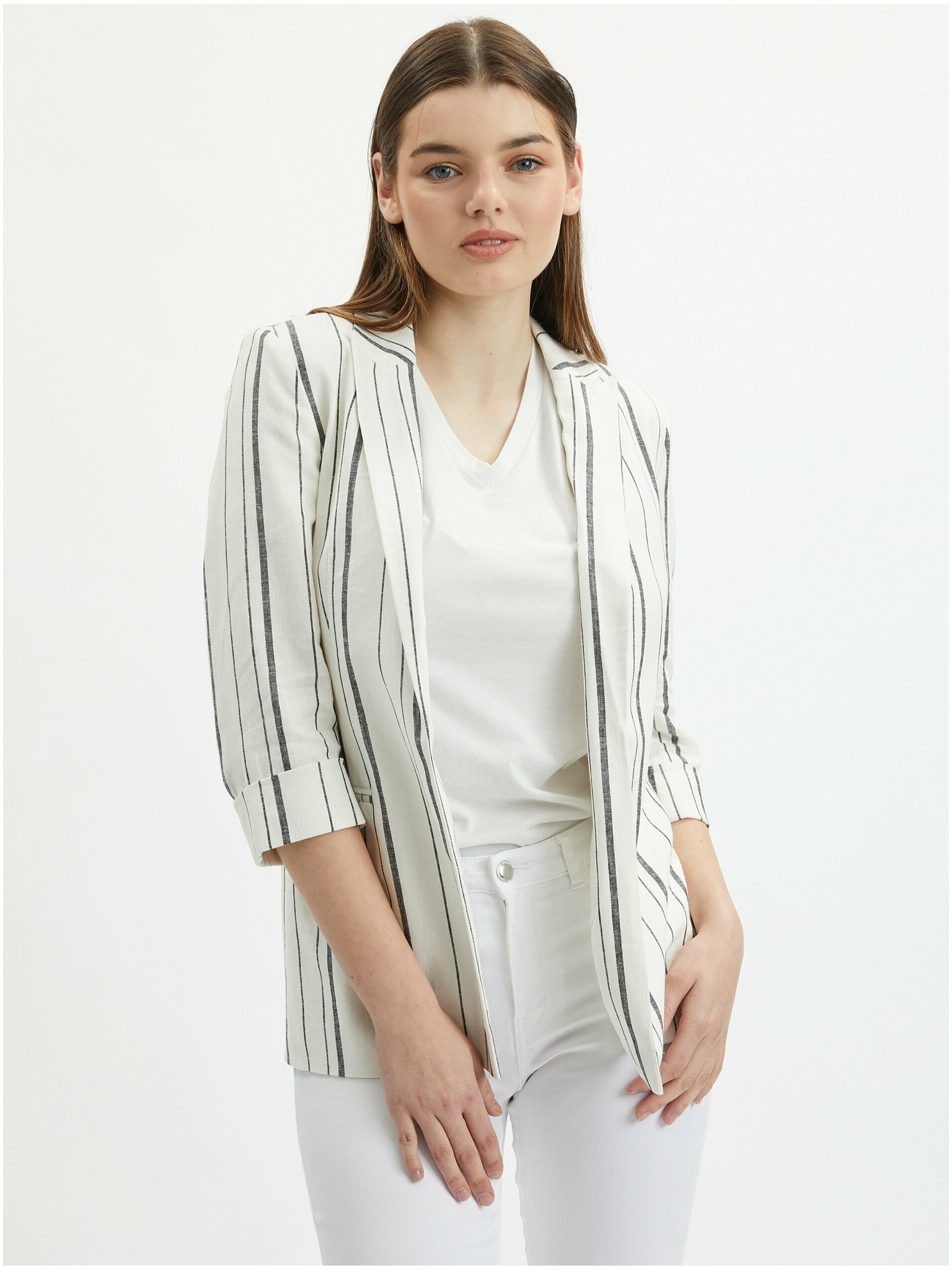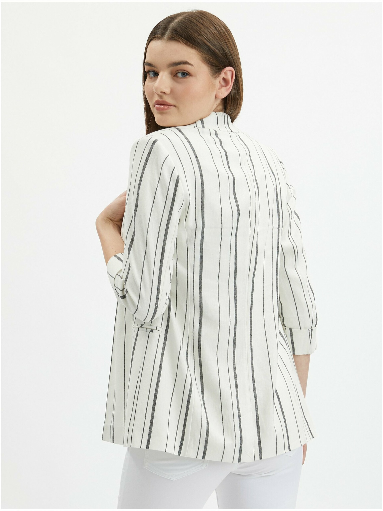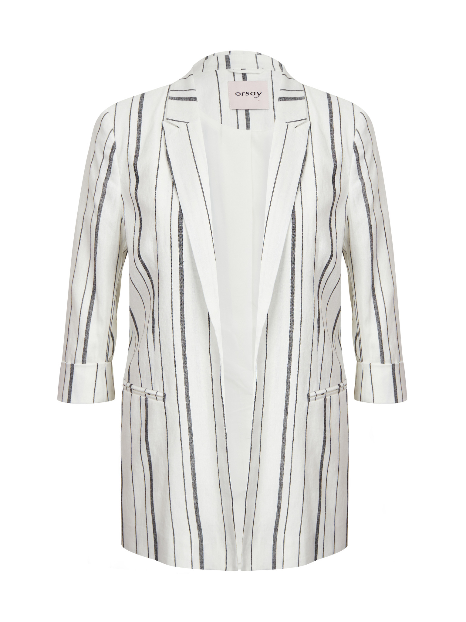 Бяло дамско ленено сако на райе ORSAY