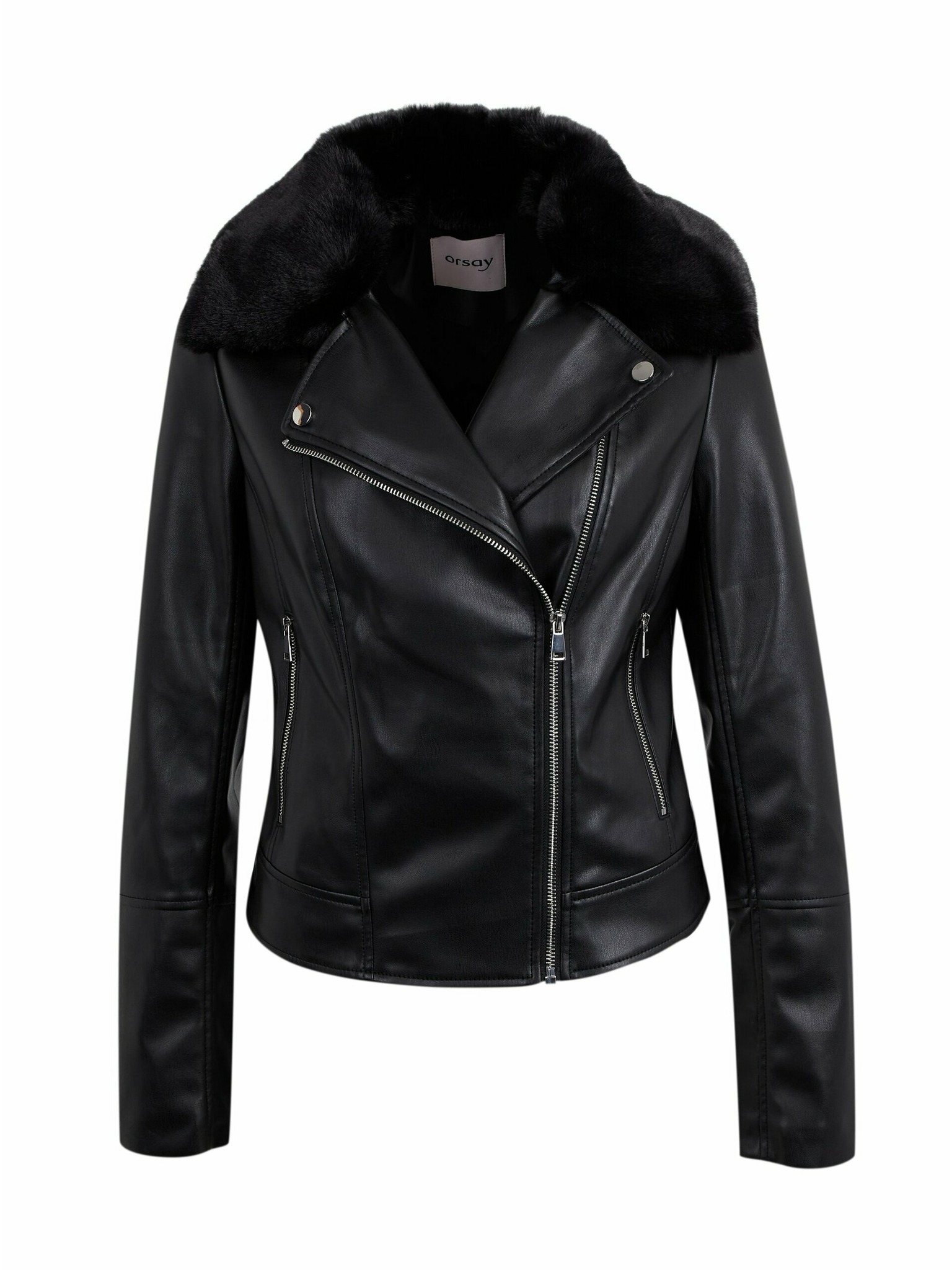 Черно дамско яке от изкуствена кожа с изкуствен косъм ORSAY