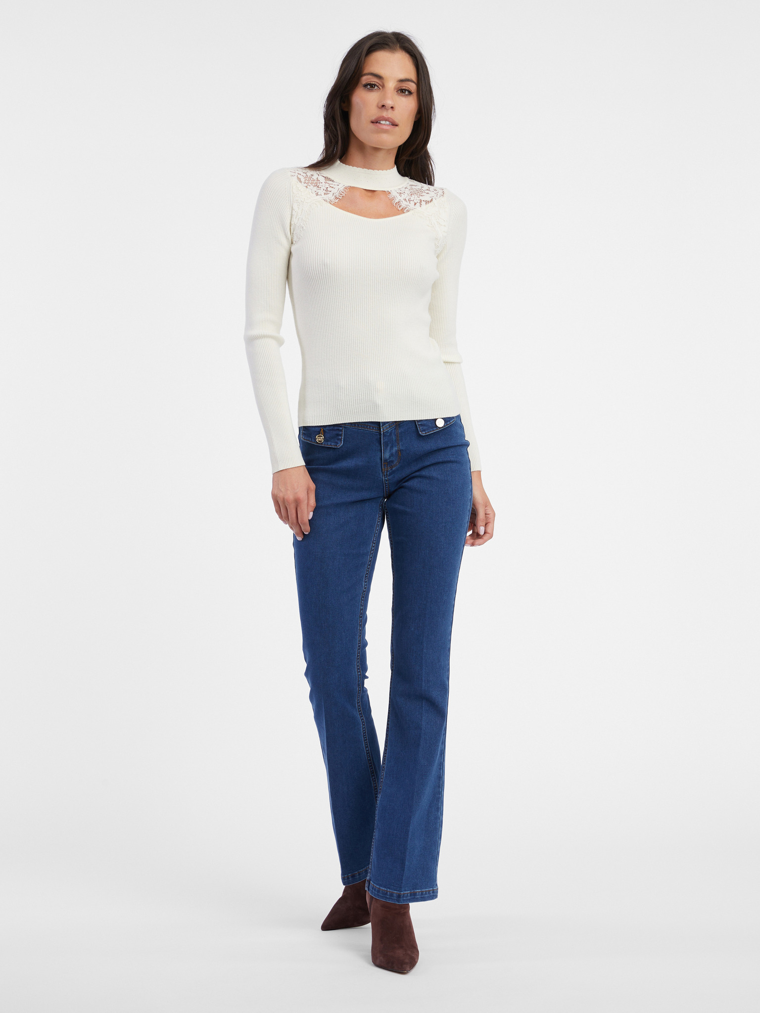 Кремав дамски лек пуловер с дантела ORSAY