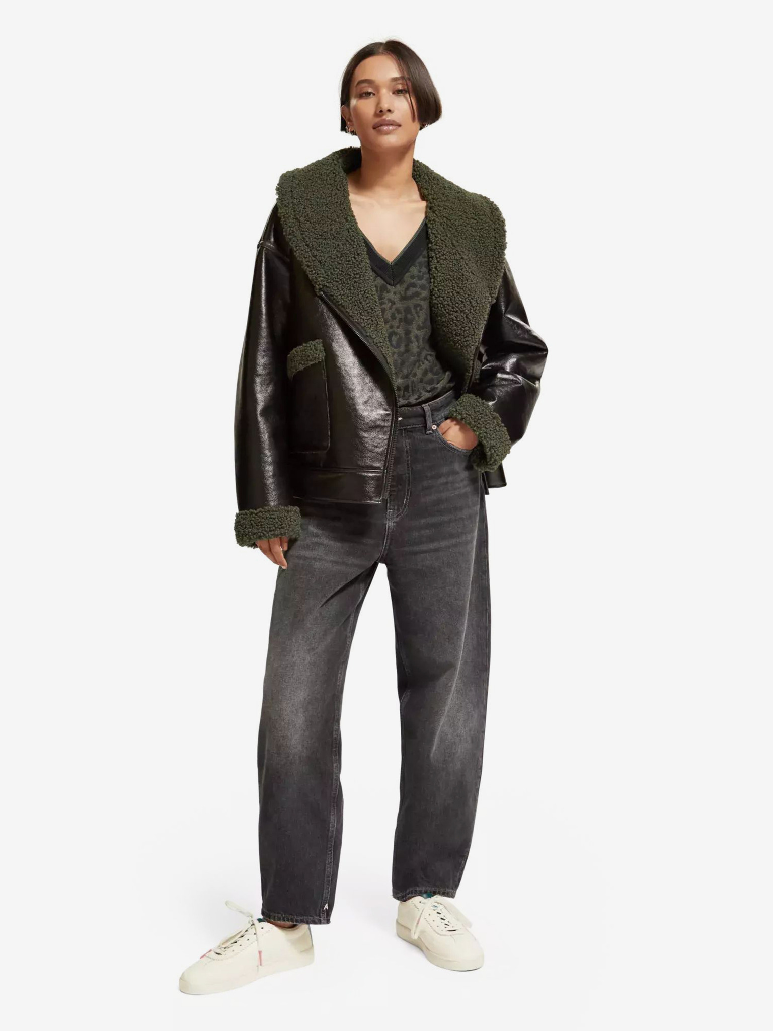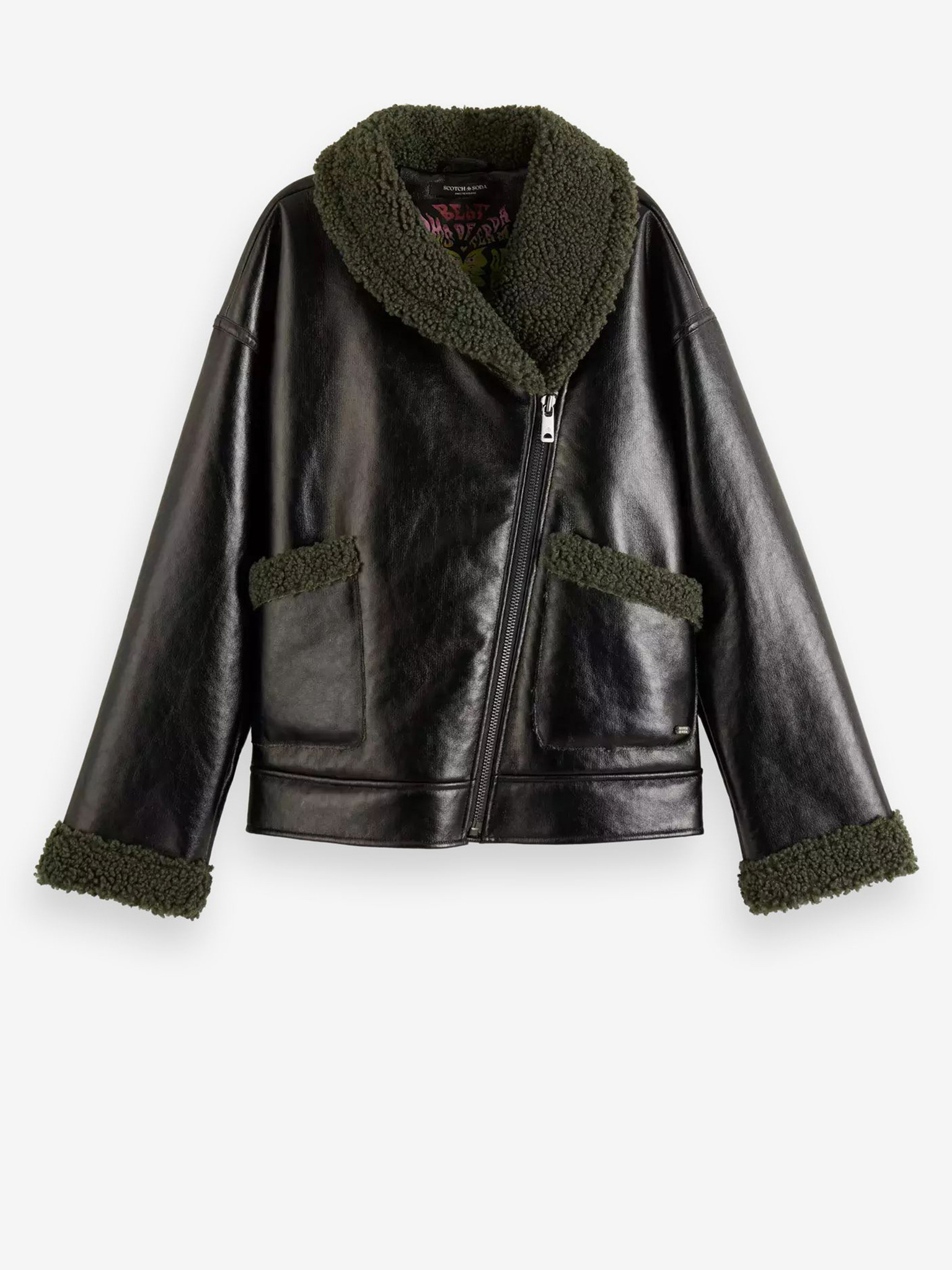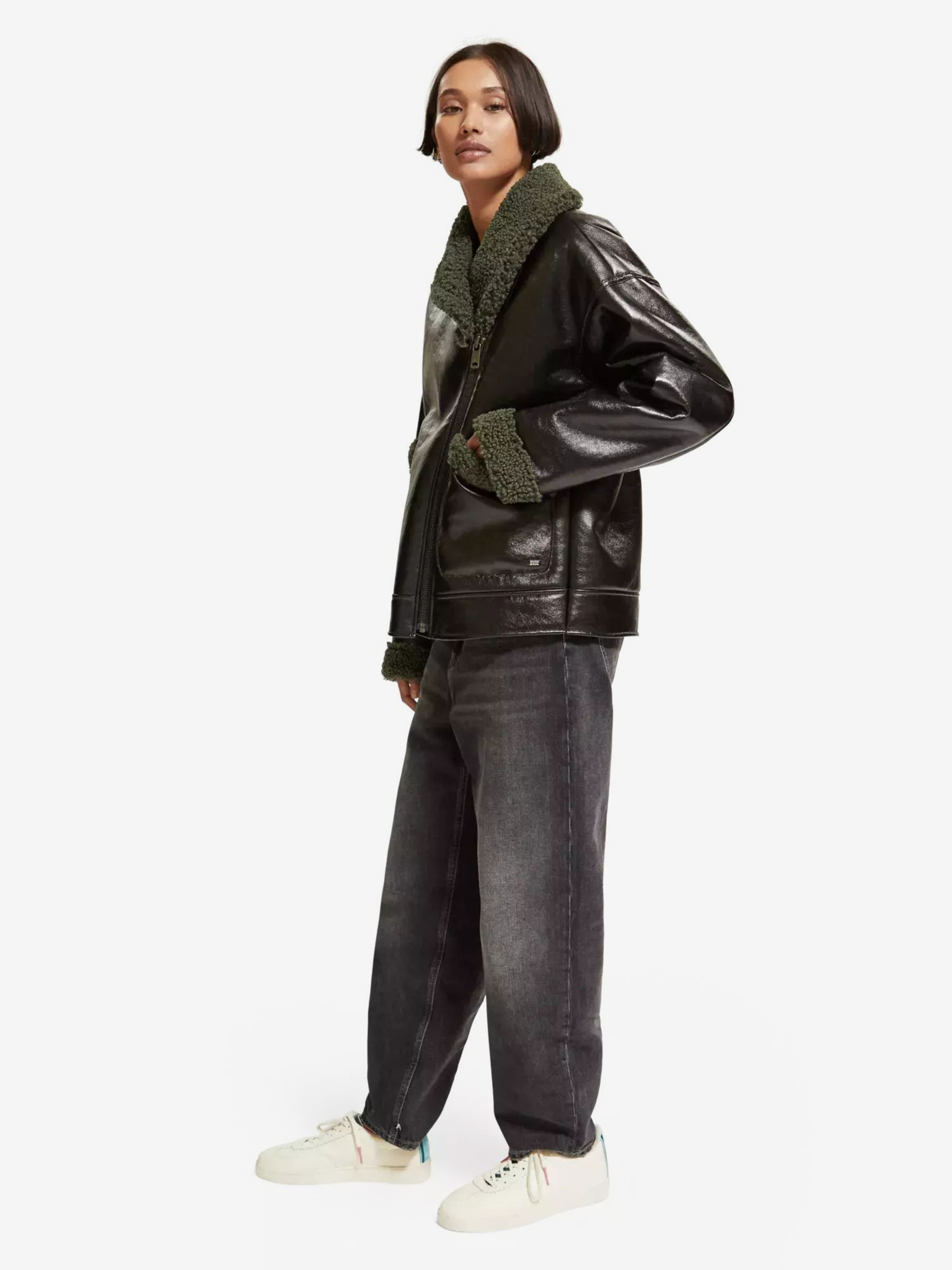 Черно дамско зимно яке от изкуствена кожа Scotch & Soda