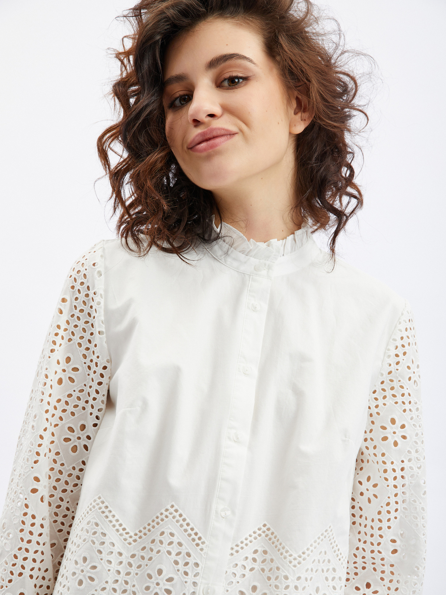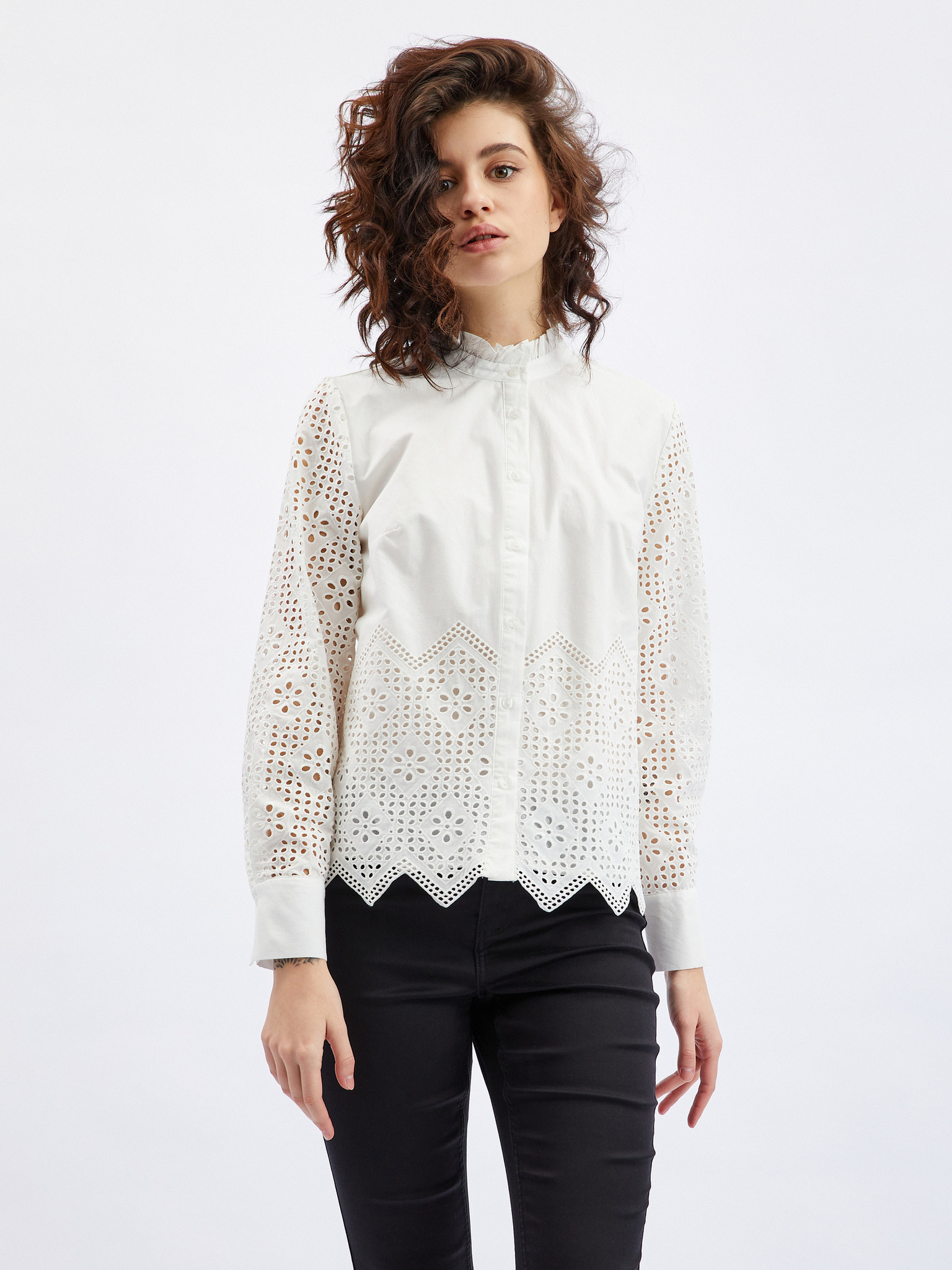 Бяла дамска блуза с декоративни детайли ORSAY