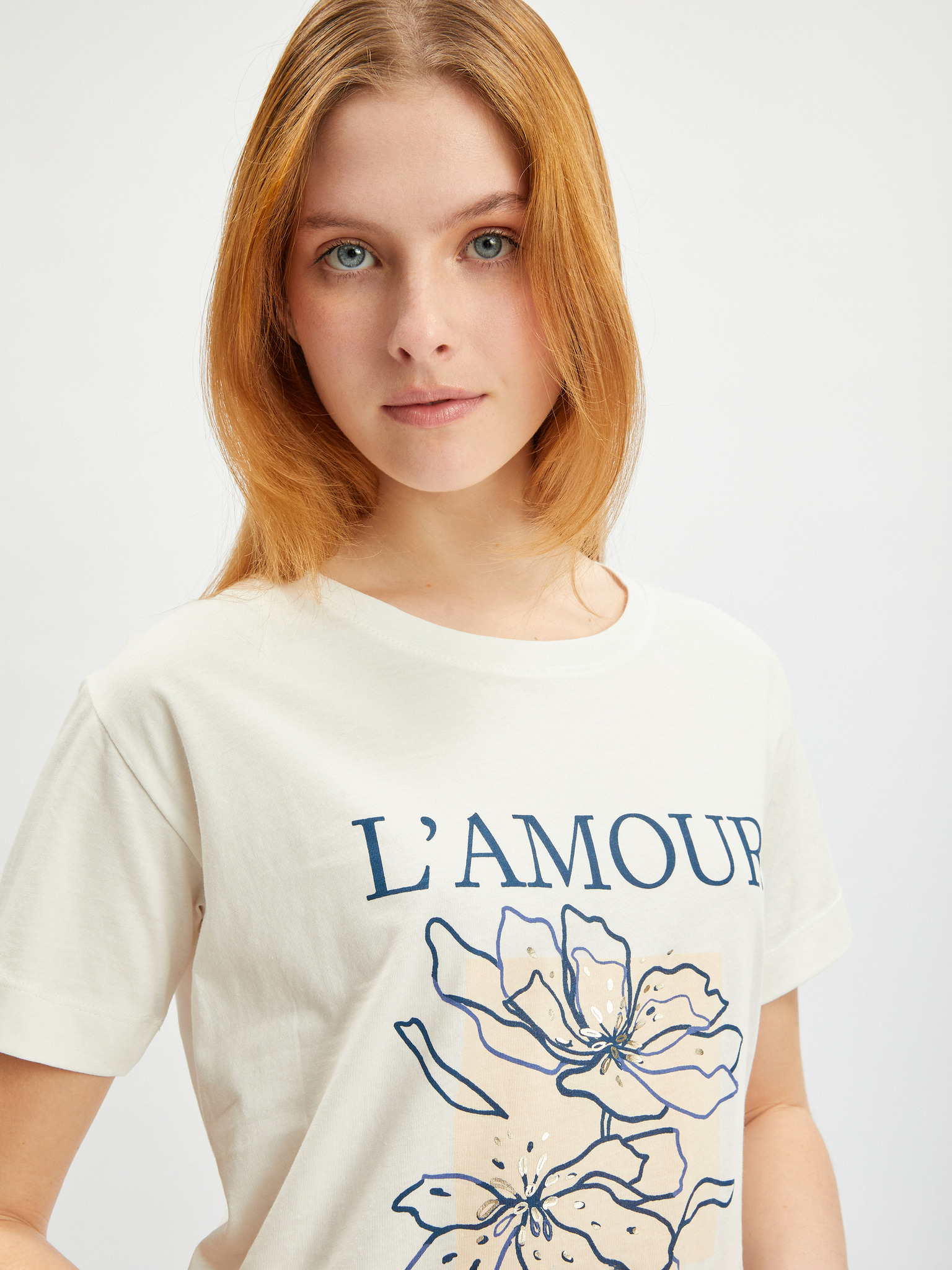 Кремава дамска тениска с къс ръкав ORSAY
