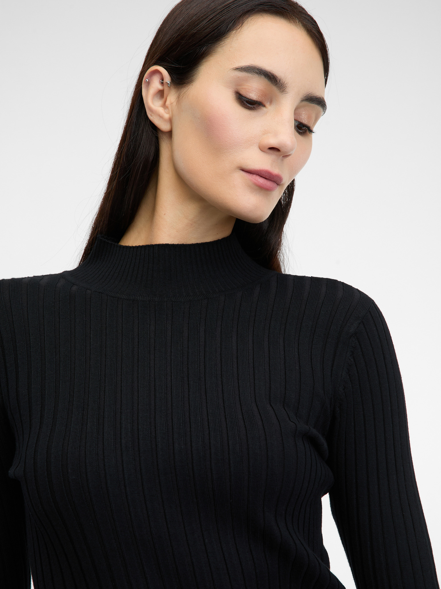 Тъмносин дамски пуловер с висока яка ORSAY
