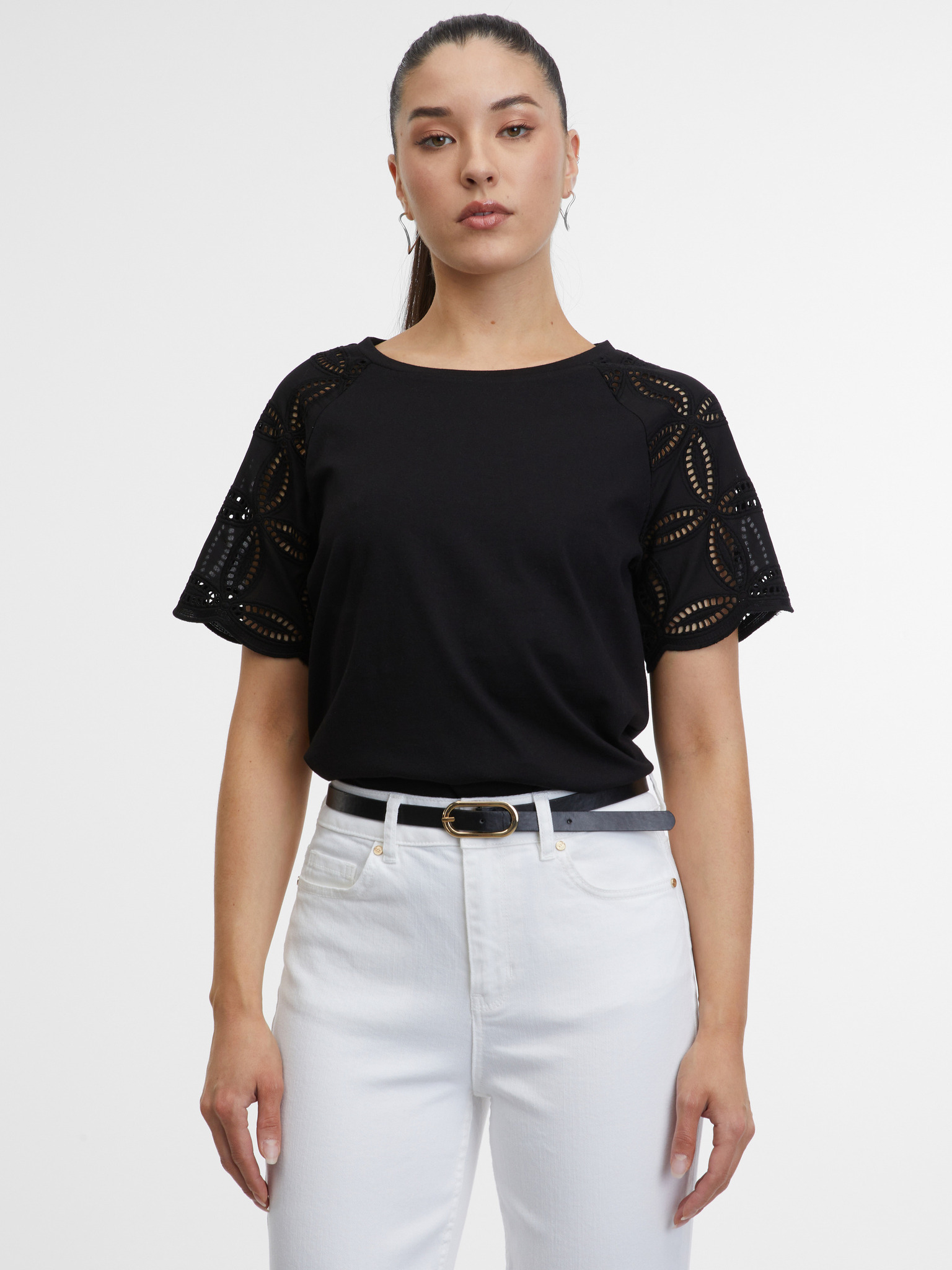 Черна дамска тениска с къс ръкав ORSAY