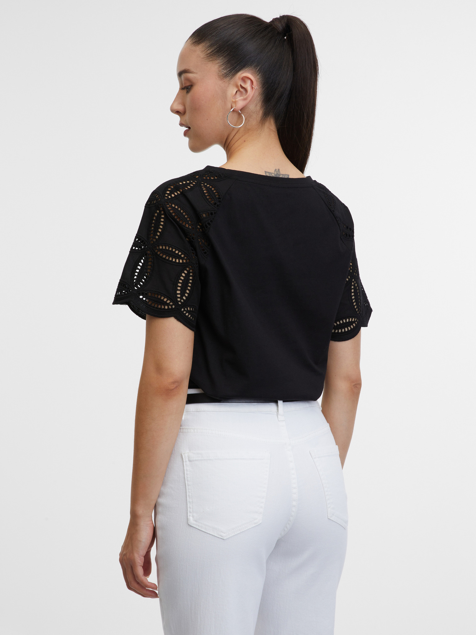 Черна дамска тениска с апликация ORSAY